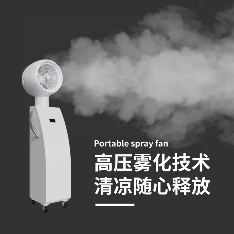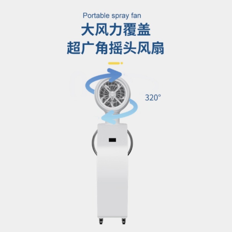 锂电池移动式喷雾风扇180度摇头带水箱高压喷雾制冷降温大风量