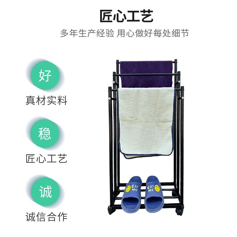 毛巾架家用免打孔浴室落地收纳架学生宿舍便携落地带轮简易挂衣架