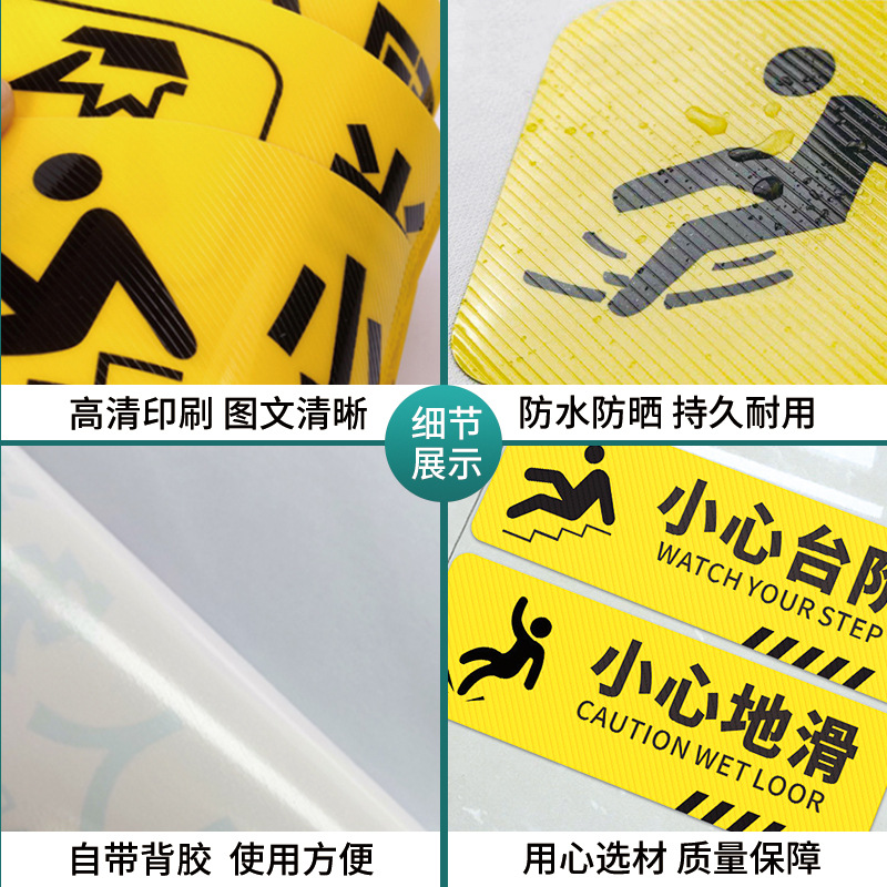 现货商场楼梯小心台阶提示贴 PVC斜纹磨砂耐磨防水小心地滑警示牌
