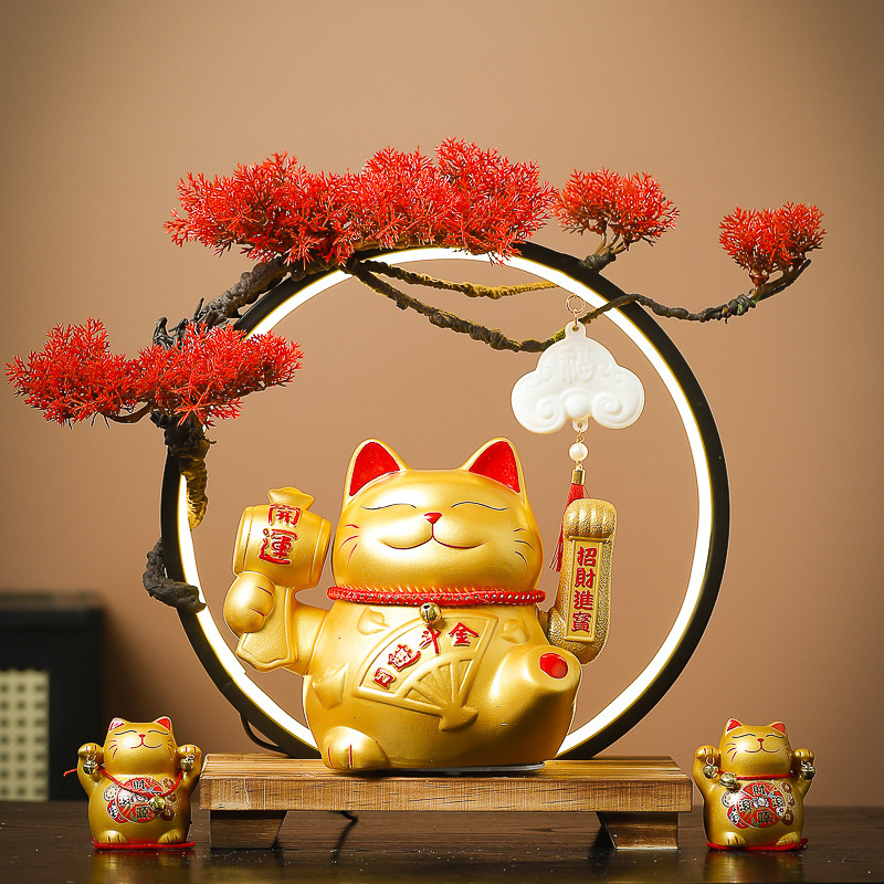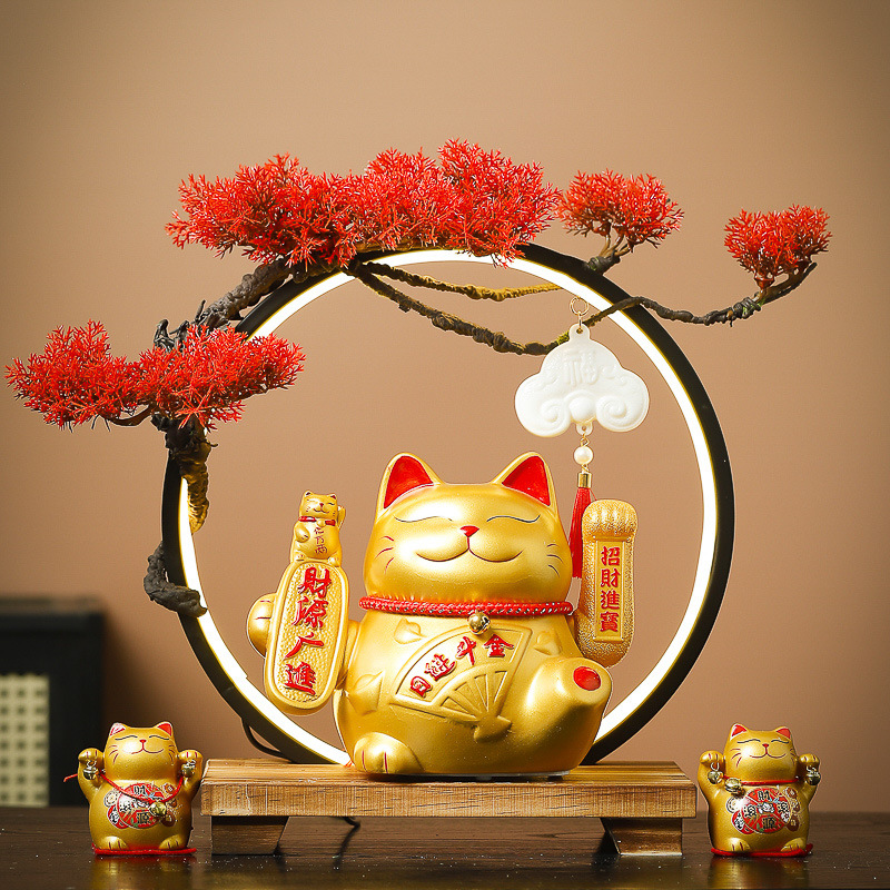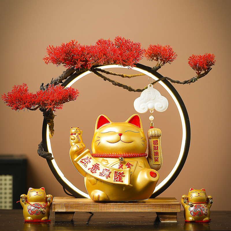 | 尺寸 | 7寸恭喜发财招财猫+红崖柏藤条灯圈摆件 | 尺寸 | 7寸生意兴隆招财猫+红崖柏藤条灯圈摆件 |
