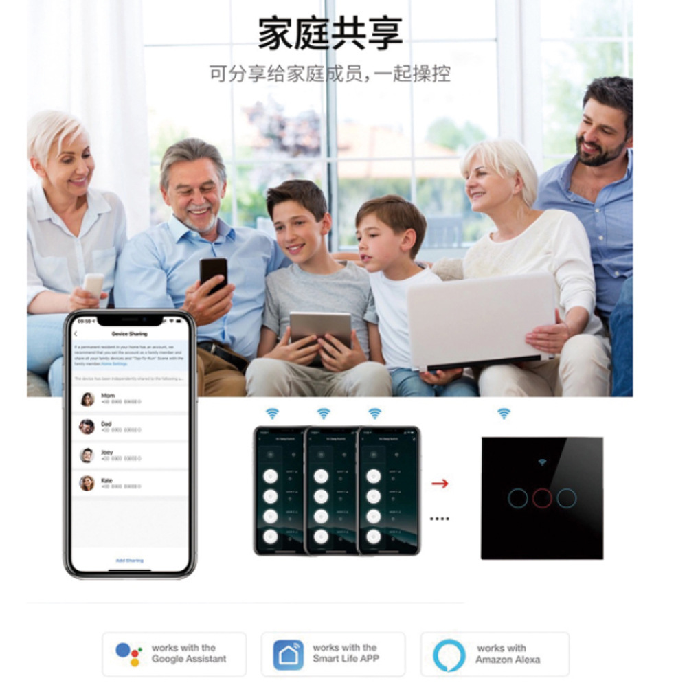 | 型号 | 易微联WiFi-单零火3路 黑色 | 型号 | 可做彩色玻璃面板 |