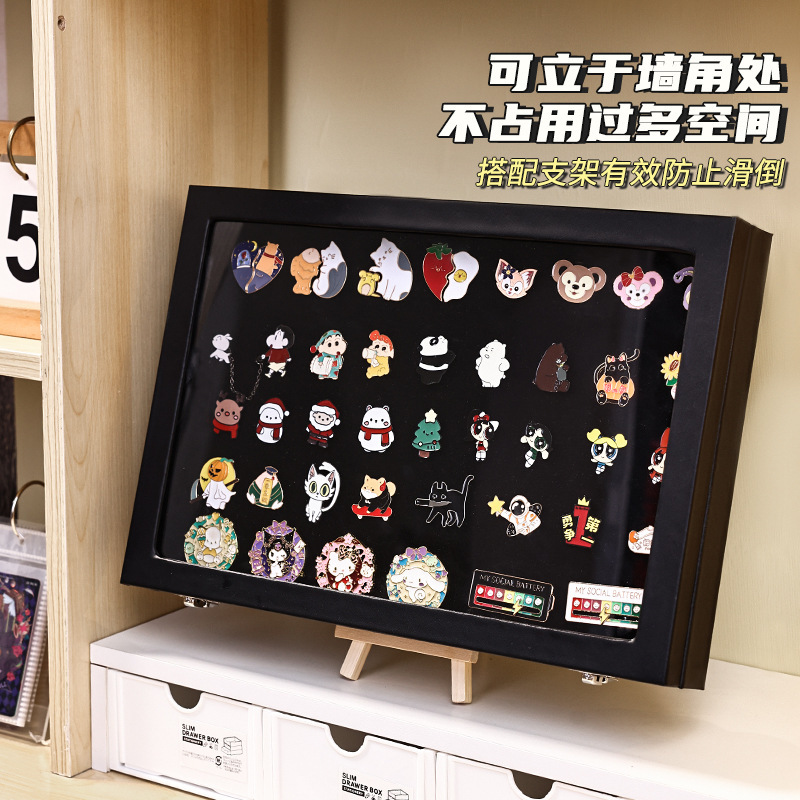 胸针盖收纳盒纪念章金属盒板带勋章收藏徽章防尘支架展示毛毡