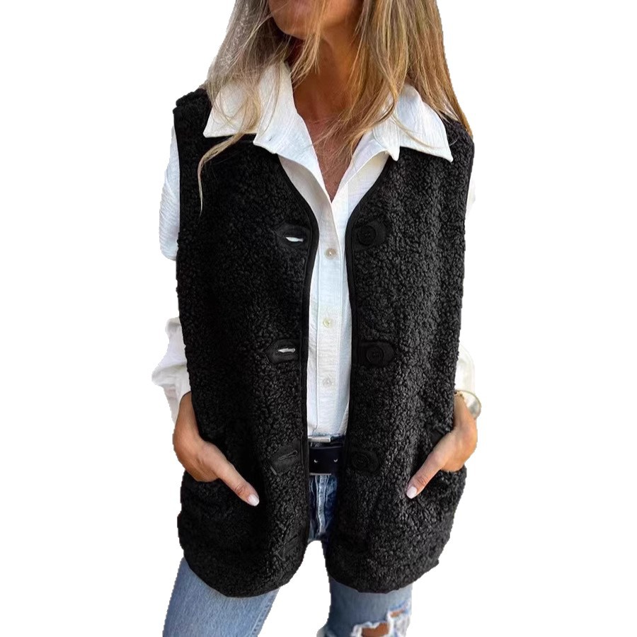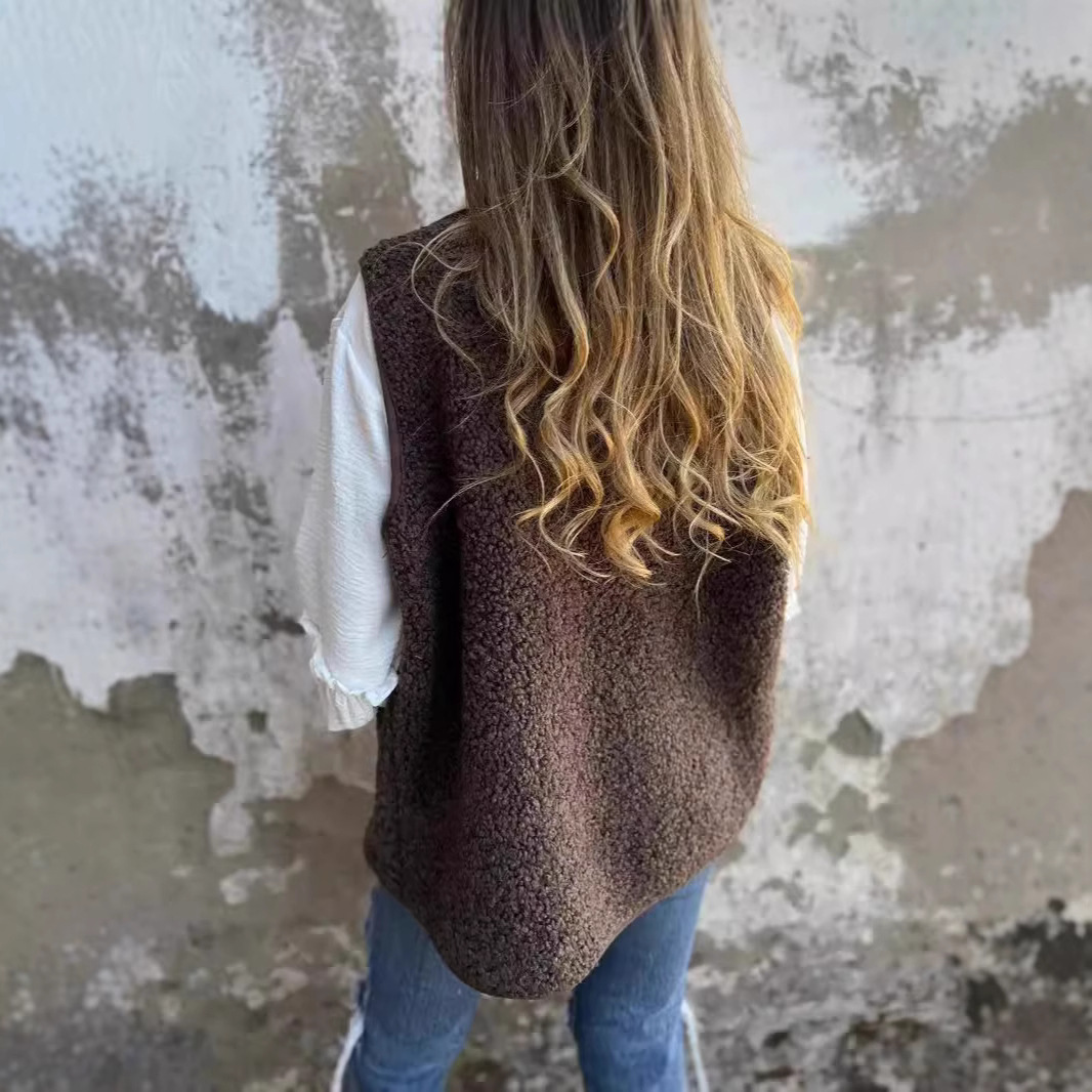 2024独立站秋冬新款羊羔绒摇粒绒纽扣背心夹克马甲外套