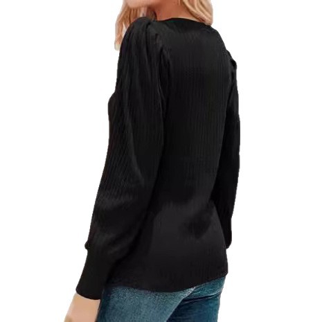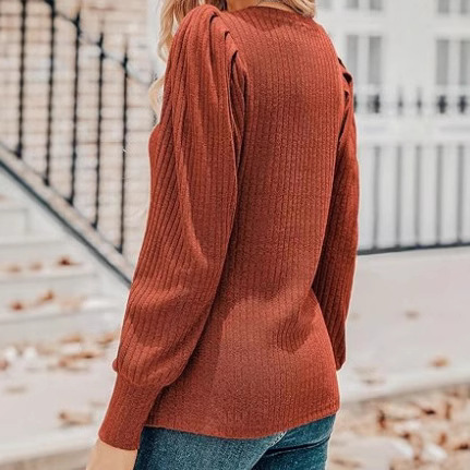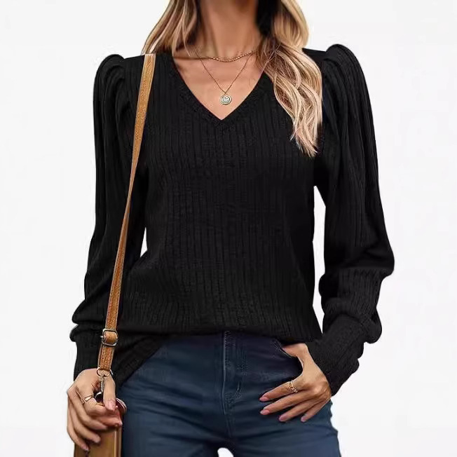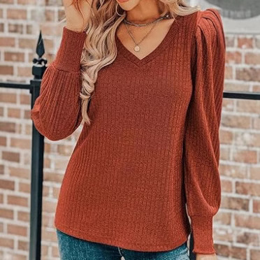 2024亚马逊跨境独立站女式坑条上衣v领针织长袖