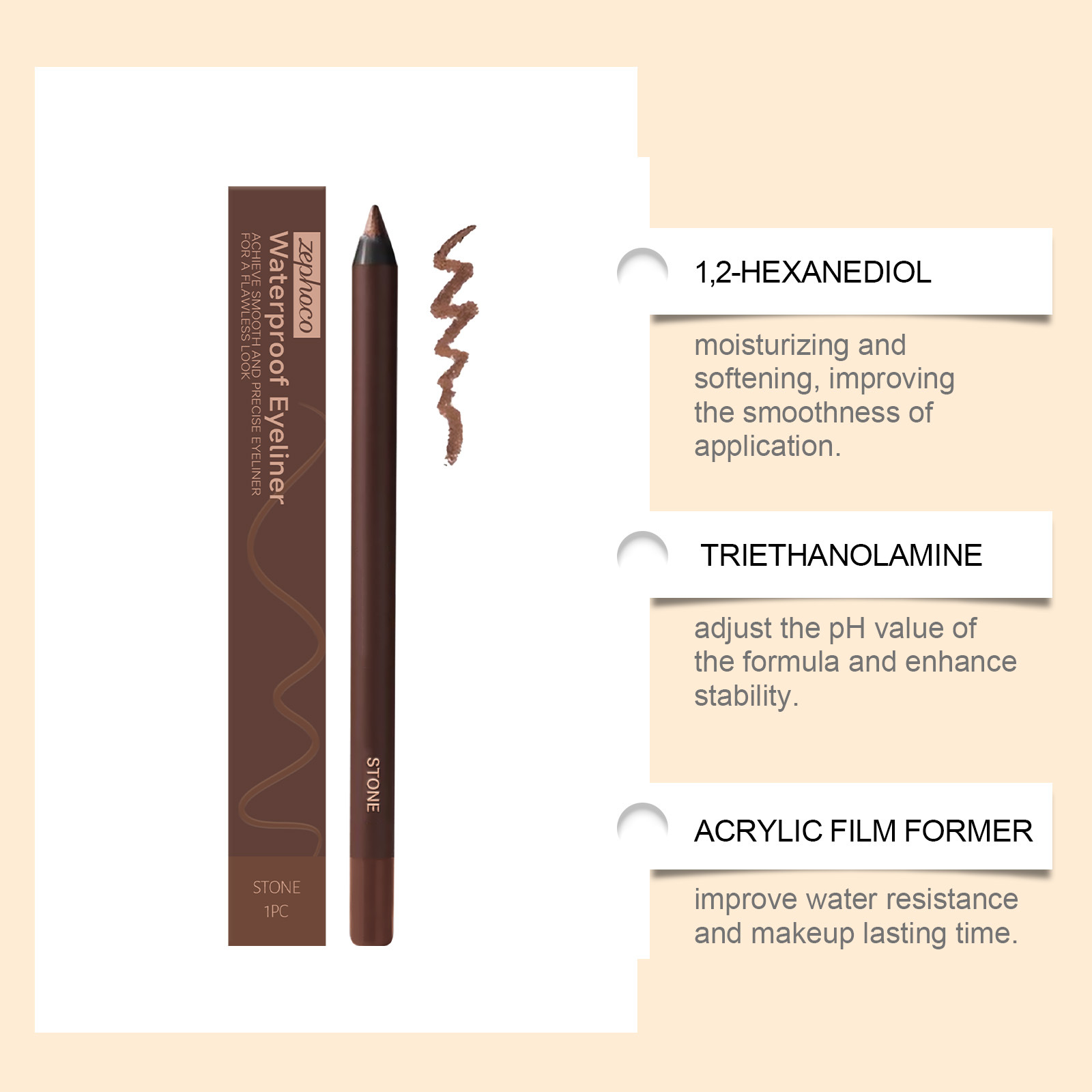 ZEPHOCO石褐色防水眼线笔 持久不易晕染勾勒自然流畅彩妆眼线笔