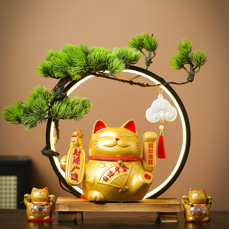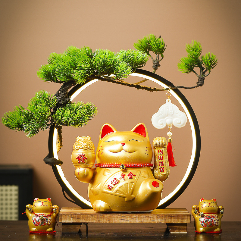 | 尺寸 | 7寸恭喜发财招财猫+美叶藤条灯圈摆件 | 尺寸 | 7寸生意兴隆招财猫+美叶藤条灯圈摆件 |