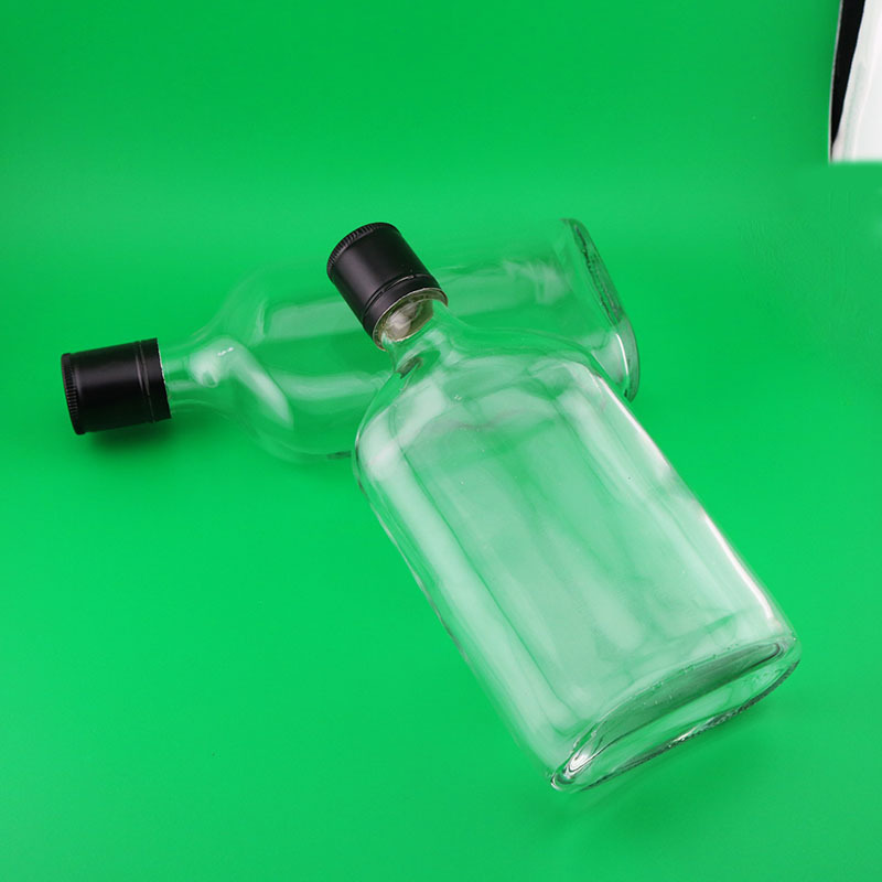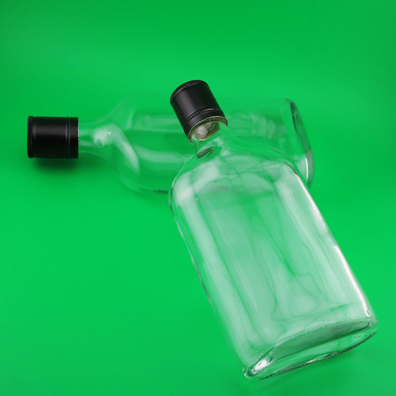 350ml扁酒瓶玻璃白酒瓶自酿原浆散酒分装瓶果酒饮料瓶带盖空瓶子