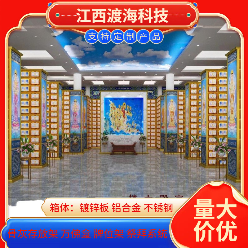 主营产品:骨灰存放架,骨灰盒寄存架,福寿架,万佛龛,牌位架,殡仪馆祭拜系统,寺院智能化管理系统、龙骨吊顶、智能骨灰寄存架
