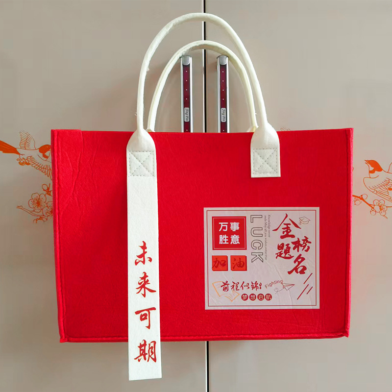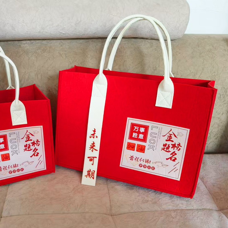 初中高考送礼手提袋励志金榜题名升学宴毕业成人礼品包装毛毡袋