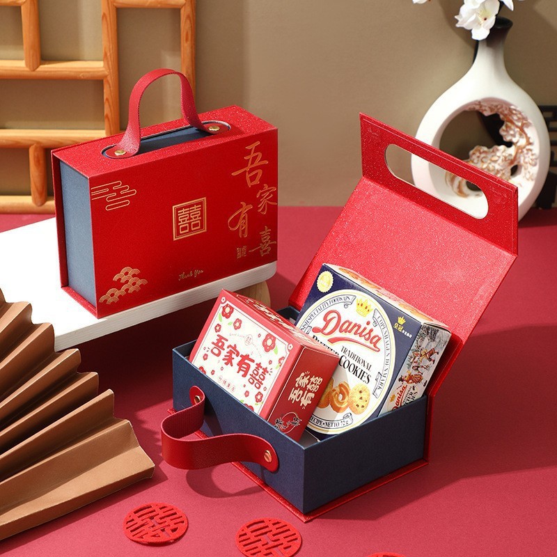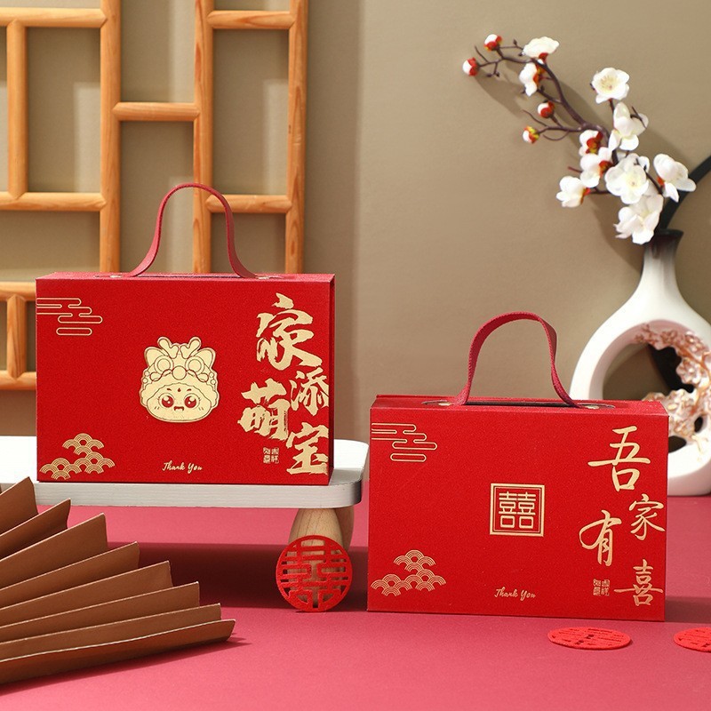 新款吾家有喜家添萌宝伴手礼礼盒满月百日周岁回礼手提宝宝盒糖盒