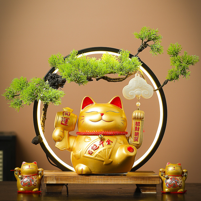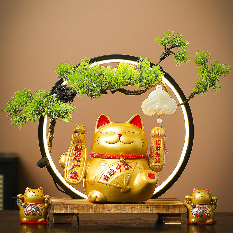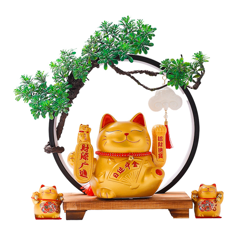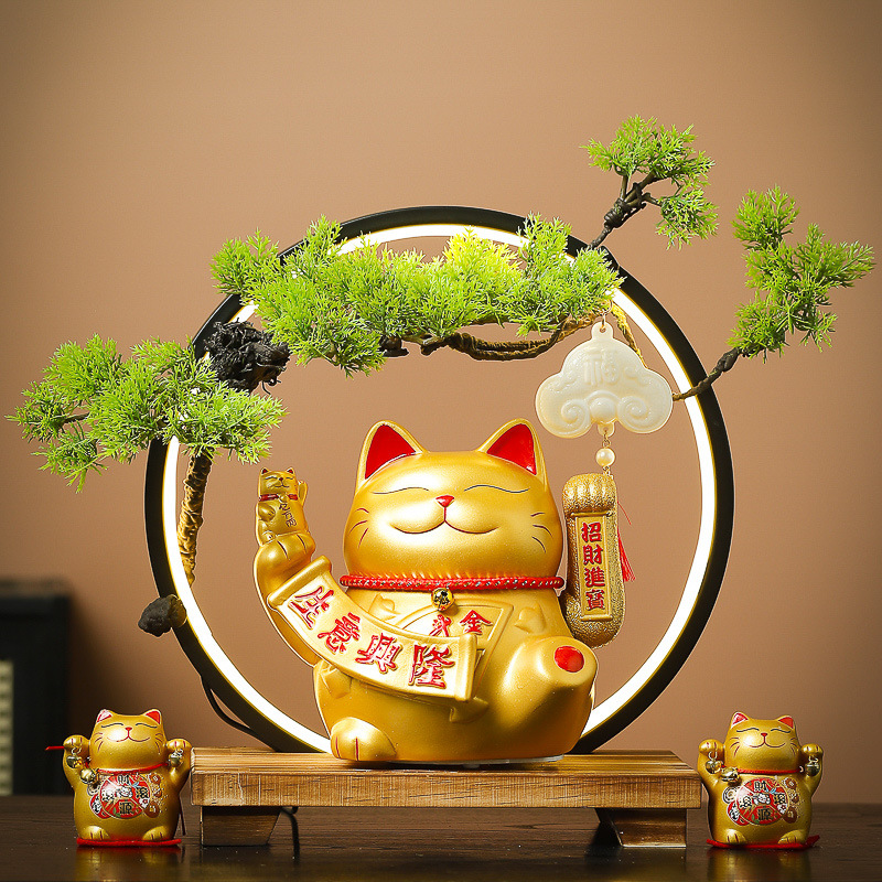 | 尺寸 | 7寸恭喜发财招财猫+崖柏藤条灯圈摆件 | 尺寸 | 7寸生意兴隆招财猫+崖柏藤条灯圈摆件 |