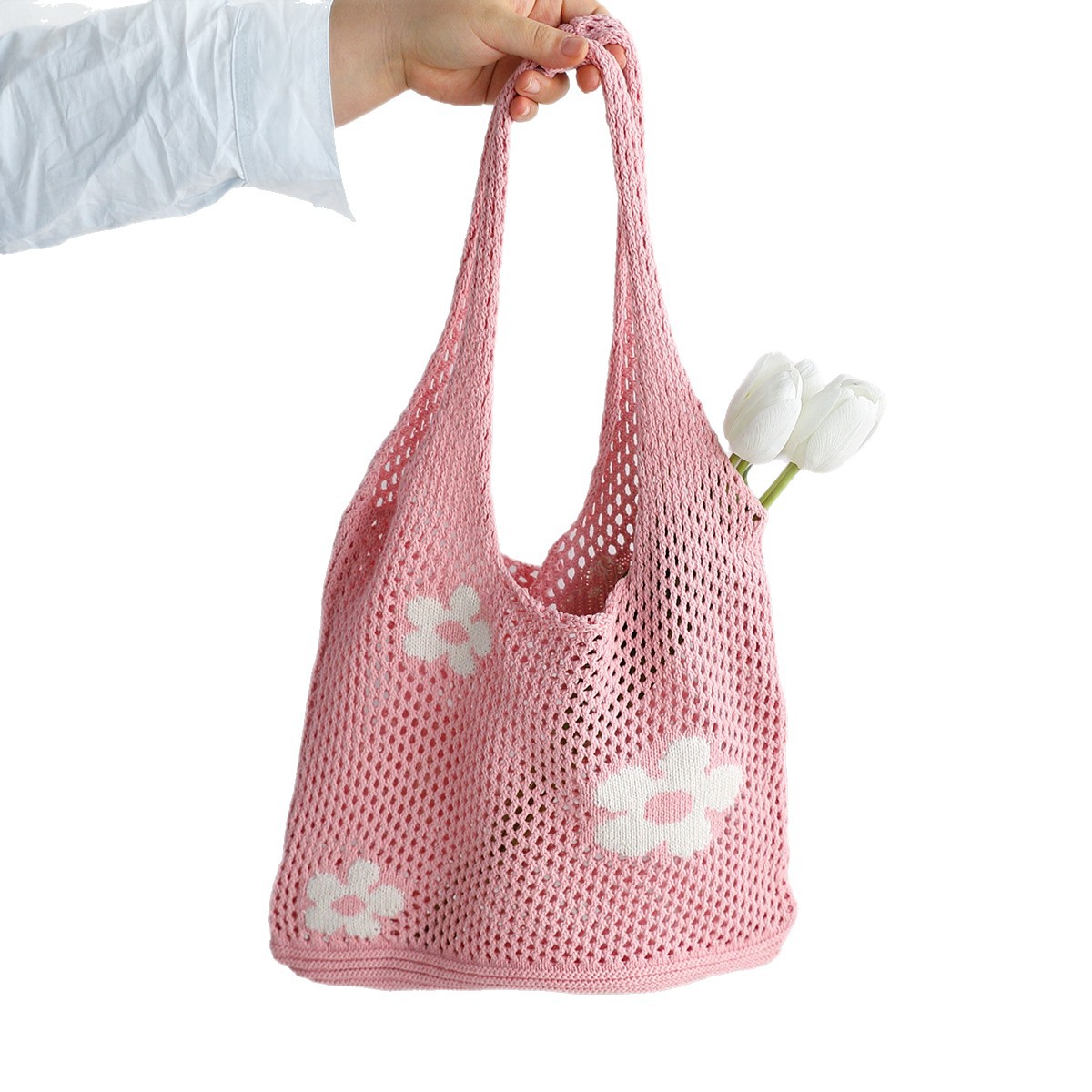 夏季百搭大容量购物袋跨境针织包简约编织包包镂空网眼女士单肩包