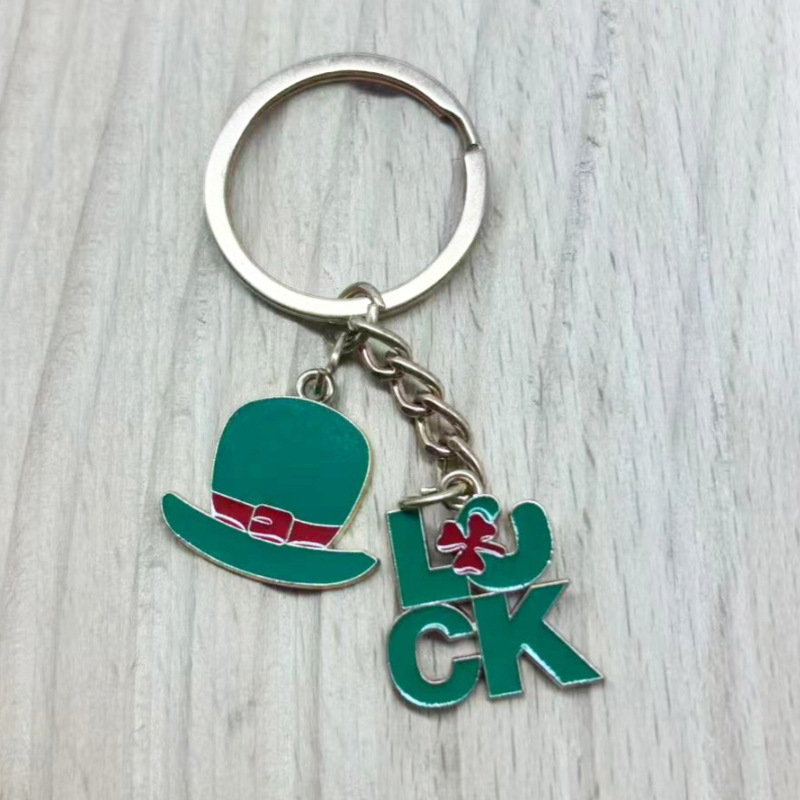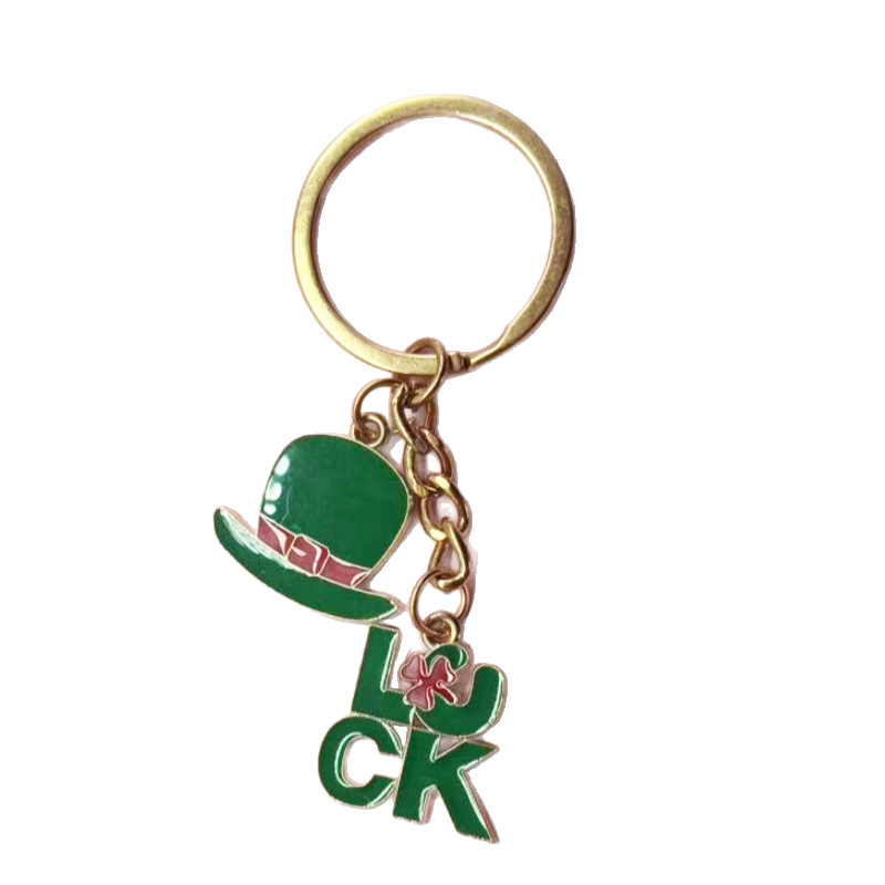 跨境亚马逊热卖创意爱尔兰节日滴油幸运三叶草帽子合金钥匙扣挂饰
