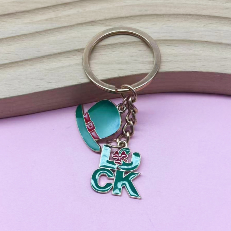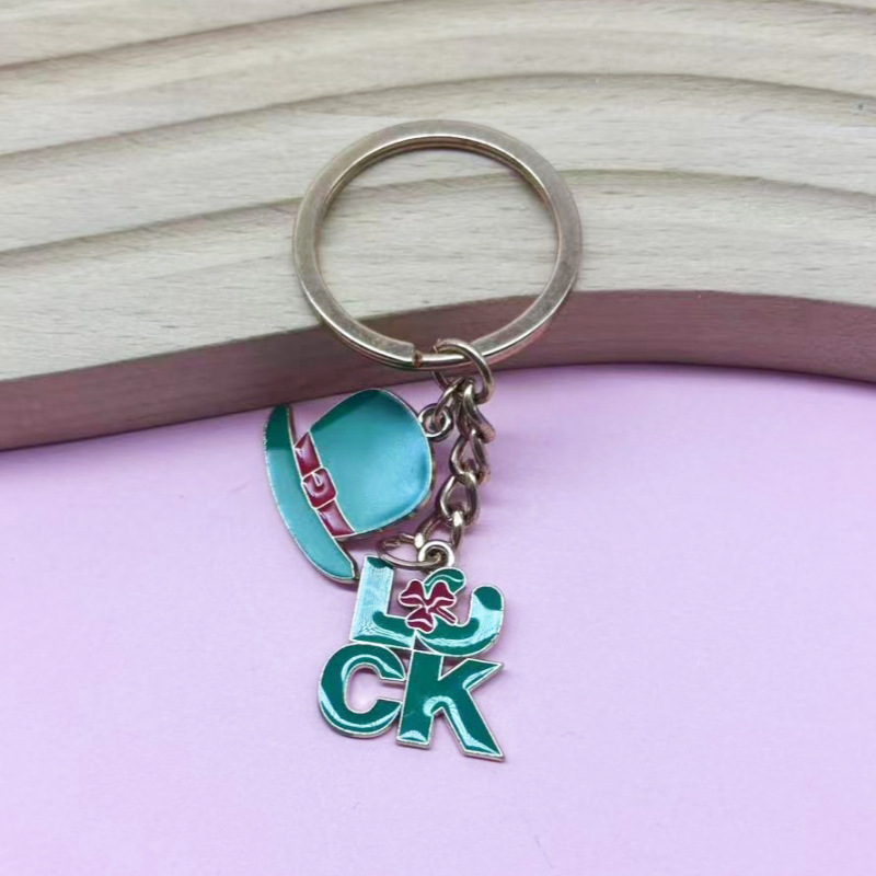 颜色ER923-白K滴油绿色爱尔兰节帽子lucky钥匙扣