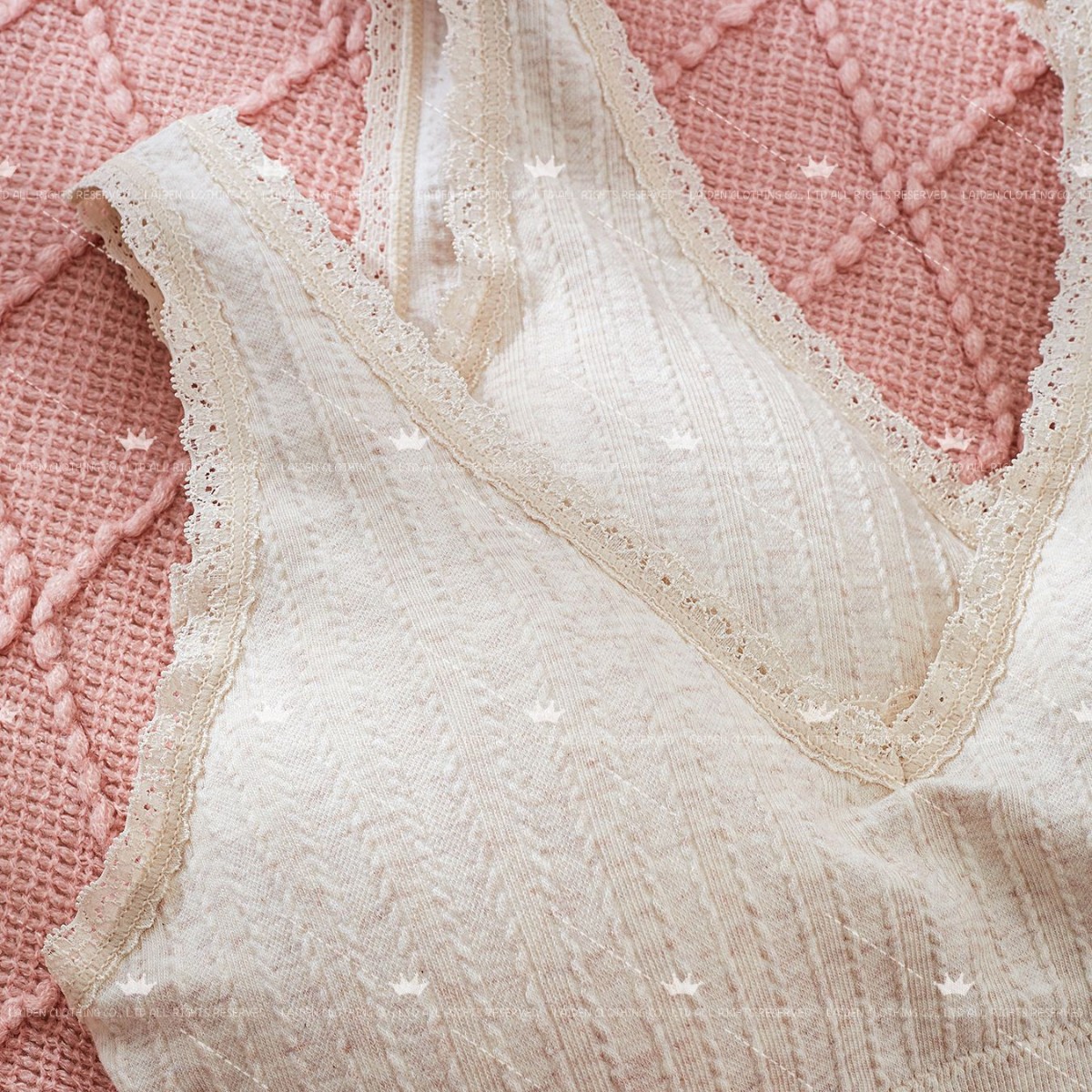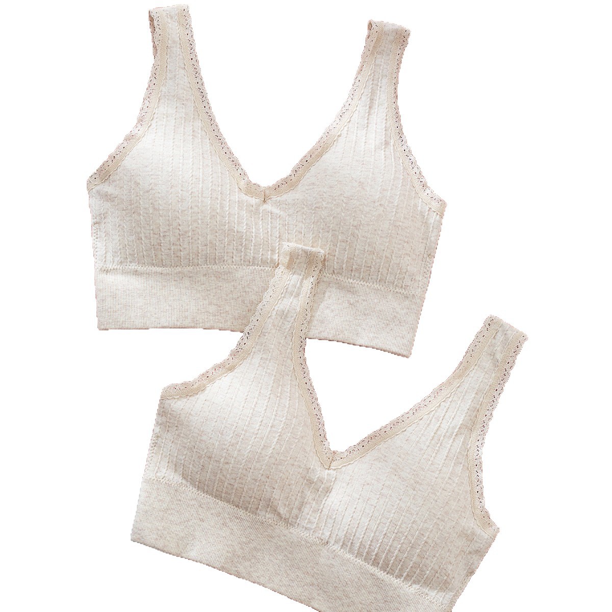 少女无缝2件装裹胸抹胸吊带背心胸罩蕾丝边可拆卸聚拢运动文胸