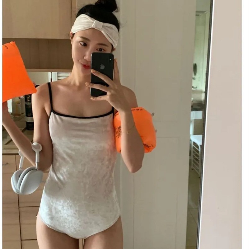 跨境韩国ins风高级感丝绒小香风双肩吊带修身显瘦连体游泳衣女