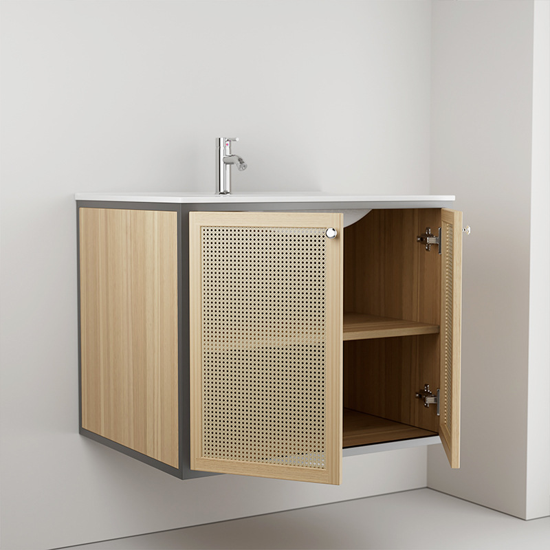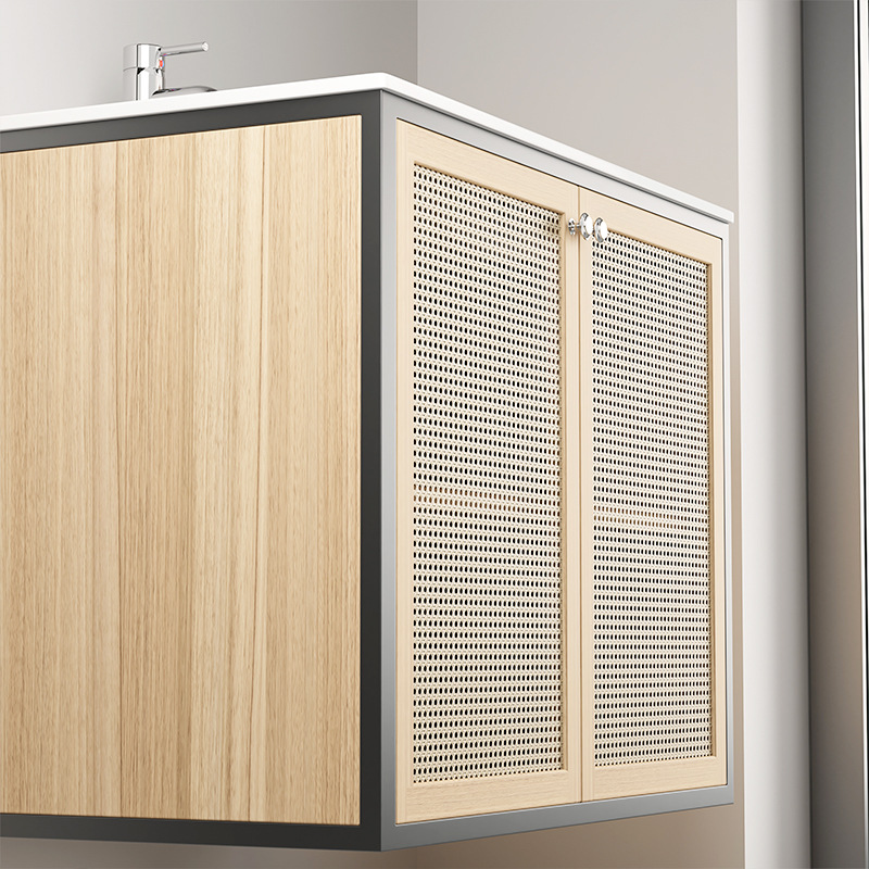 挂墙原木色浴室柜陶瓷一体盆浴室柜镜柜现代简约浴室柜组合浴室柜