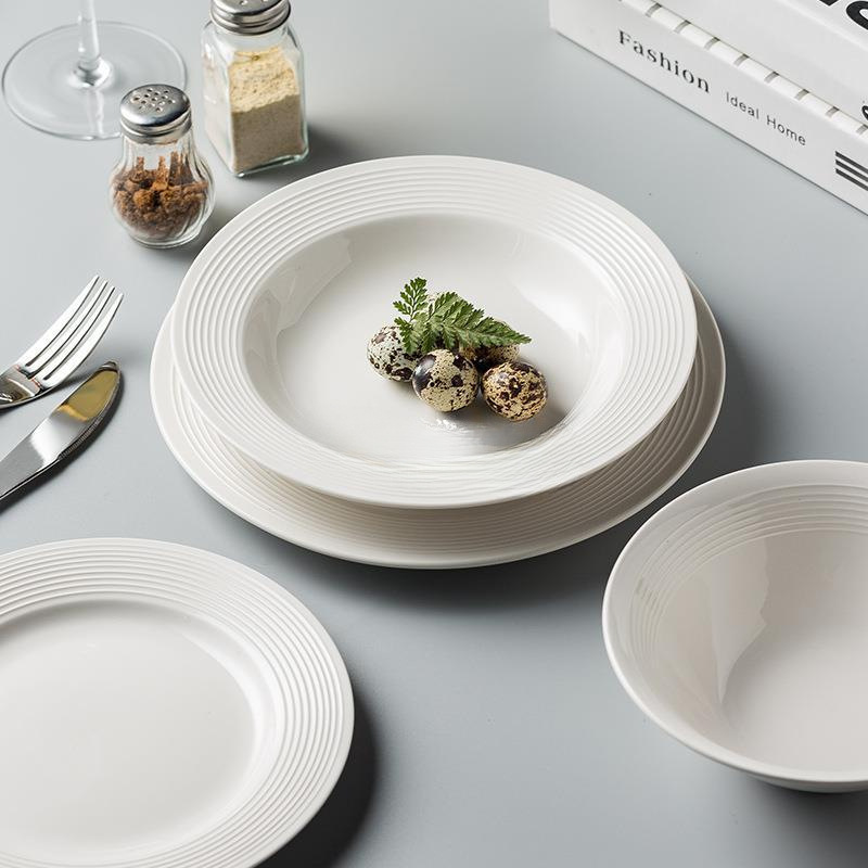 家用陶瓷盘碗螺纹盘子帽碗简约餐具套装西餐盘意面盘面碗牛排盘