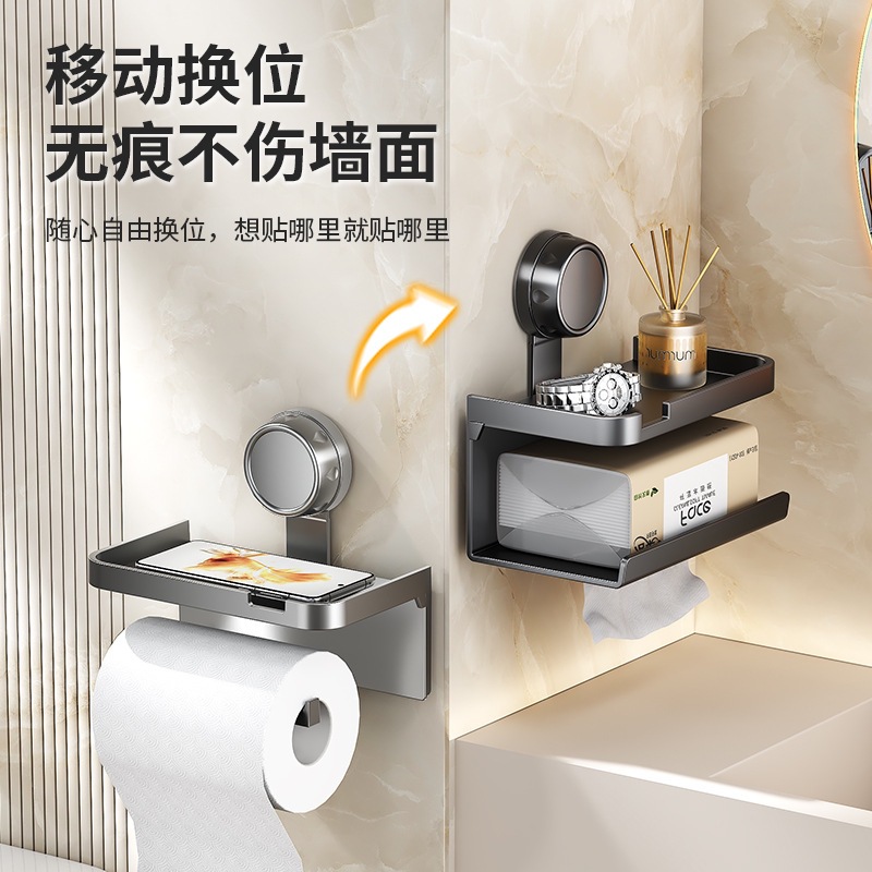 吸盘纸巾架真空卫生间防水免打孔挂壁式家用卷纸盒带置物框批发
