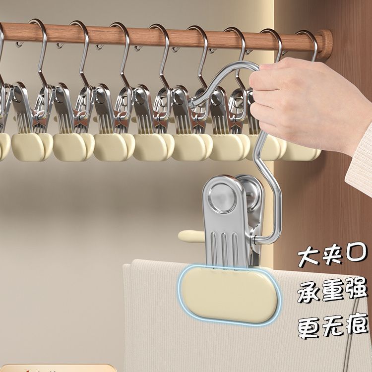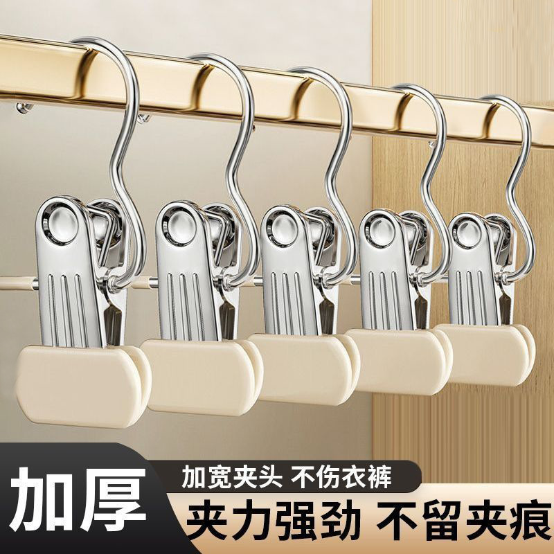不锈钢裤夹子衣架家用无痕裤架多功能挂钩裤子收纳晾晒夹帽夹衣架