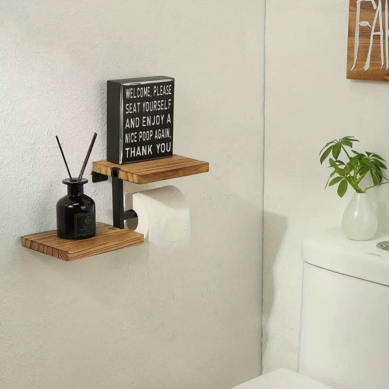跨境壁挂式木制纸巾架家居卫生间墙壁卷纸架酒店双层木质置物储物