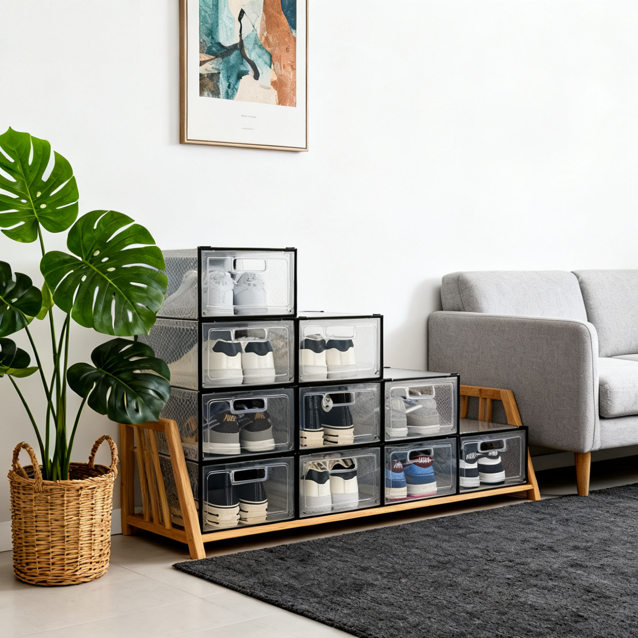 鞋盒收纳盒透明鞋子桌面收纳盒收纳鞋柜多层鞋架小号宿舍家用盒子