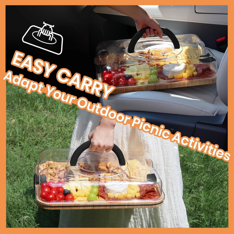 竹制带盖板厨房分格水果牛排砧板派对点心餐盘木制两面切菜板拼盘