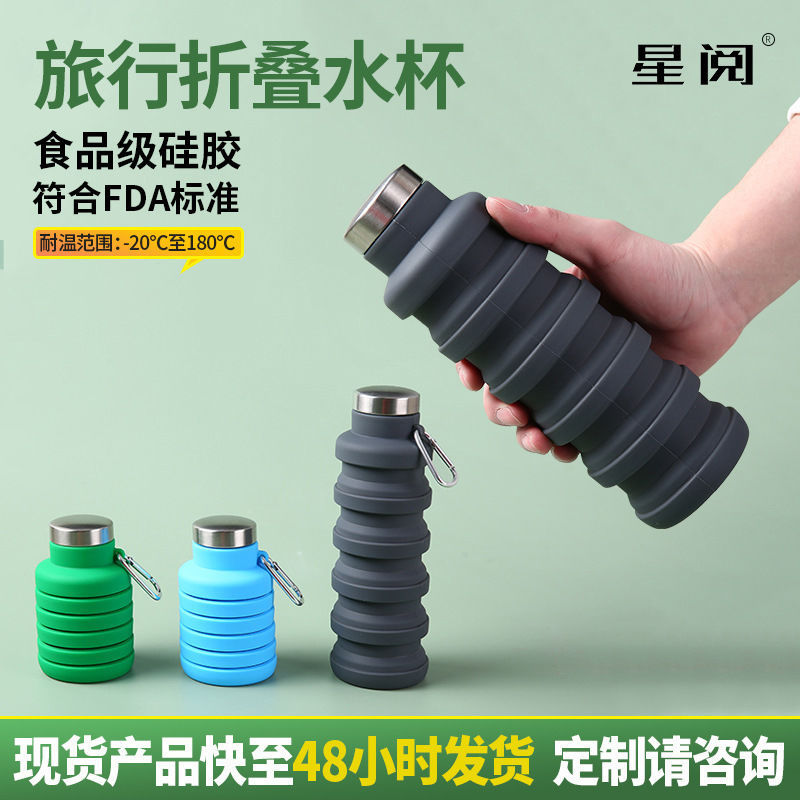折叠硅胶水壶跑步登山旅行健身便携水杯伸缩儿童水瓶水壶
