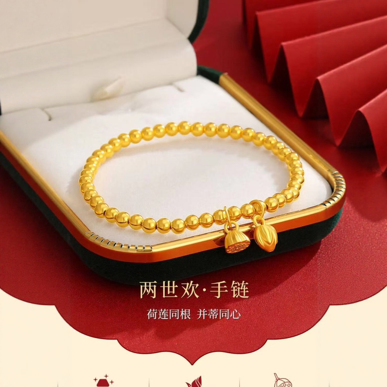 两世欢手链金色莲蓬莲心古法传承手串圆珠弹力手链直播福利品手琏