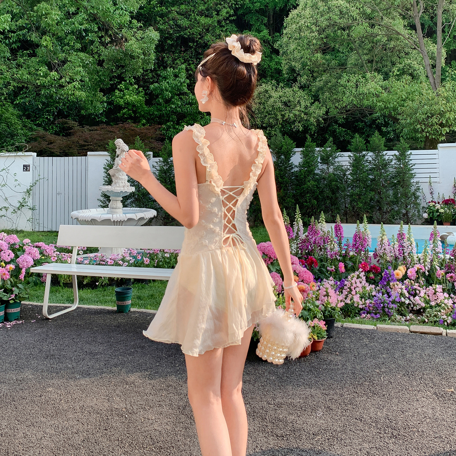新款连体裙式无袖母女同款泳装显瘦遮肚可爱宝宝儿童泡温泉泳装女