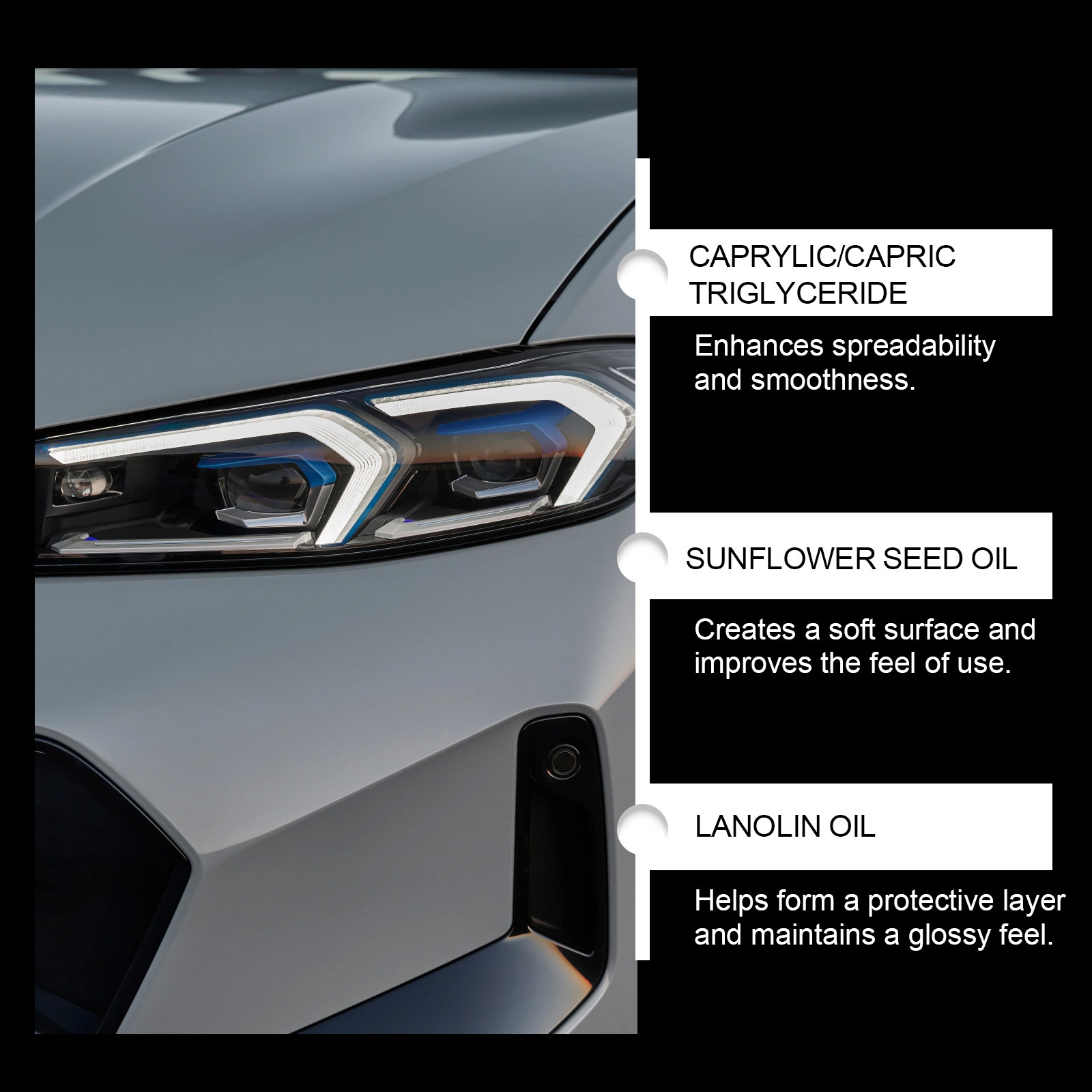 | 类型 | 汽车大灯护理膏 | 主要成分 | 水、辛酸/癸酸甘油三酯、葵花籽油、羊毛脂油、卡拉胶、氯化钠、刺槐豆胶 |