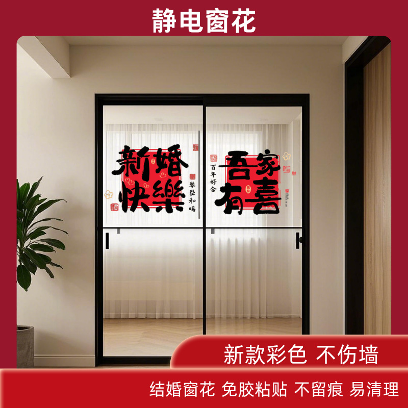 结婚喜字静电贴玻璃窗花贴纸门窗窗户婚房布置装饰专用婚庆用品