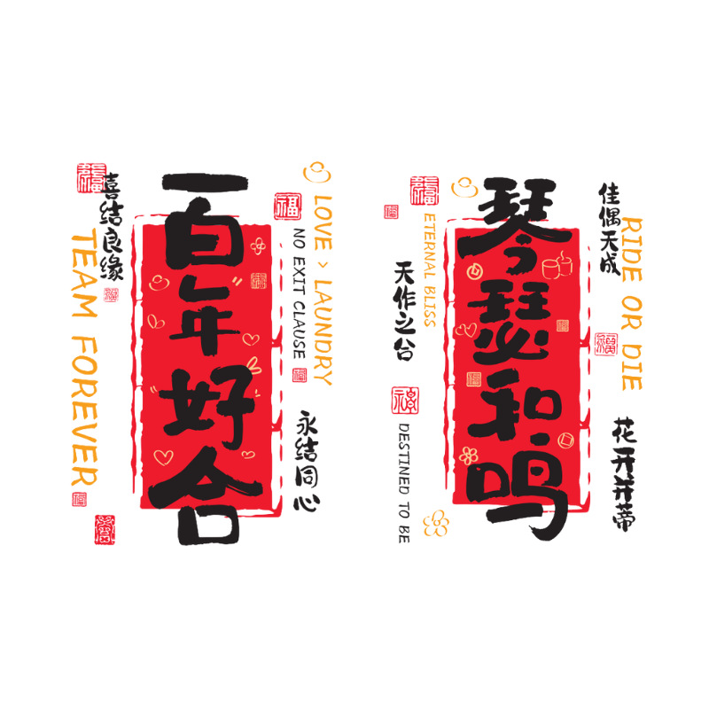 静电贴1对【百年好合+琴瑟和鸣】HJD-7