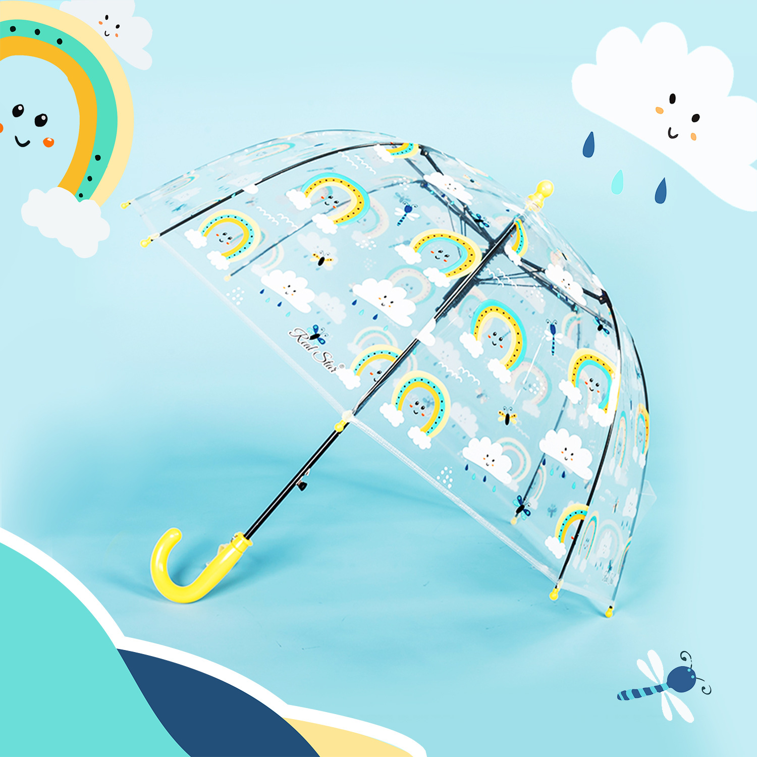 批发儿童卡通狐狸熊猫透明拱形雨伞幼儿园小学生长柄伞跨境电商