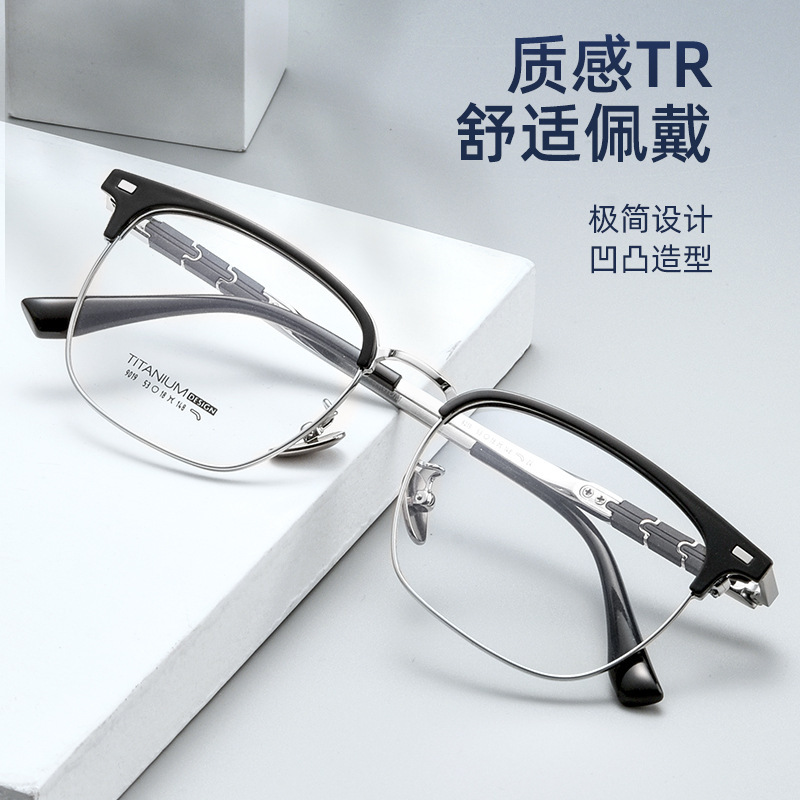 新款9019BT商务超轻纯钛长城腿镜框简约复古男士眉毛眼镜框男批发