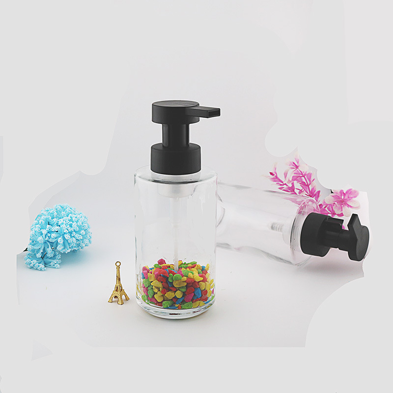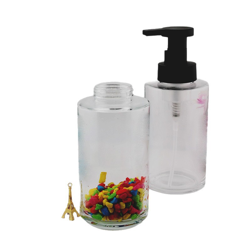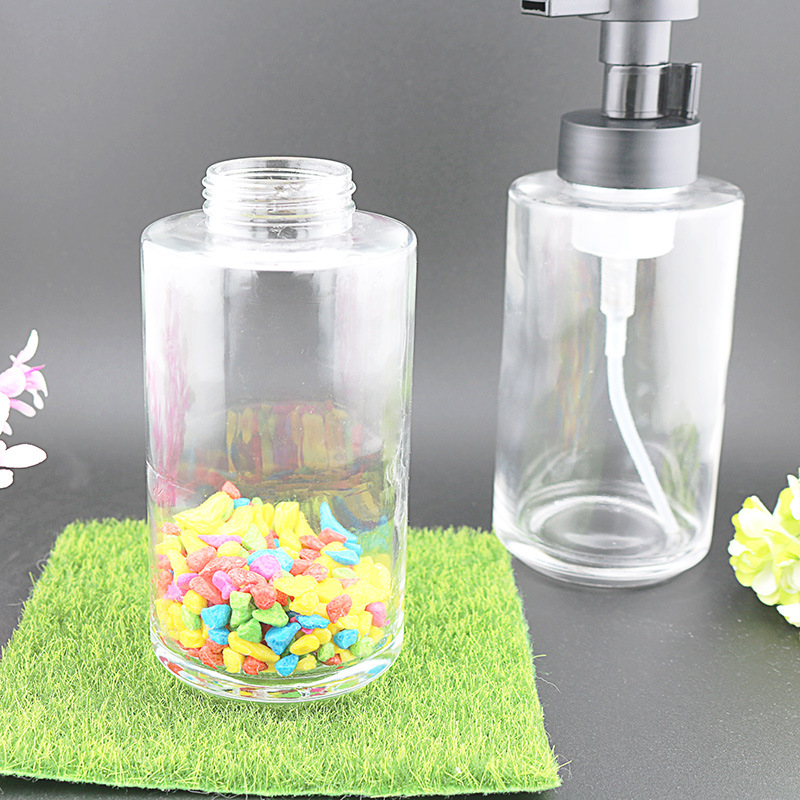 供应350ML圆柱洗手液分装瓶 精白料玻璃摩斯消毒水瓶泡沫瓶泡沫泵