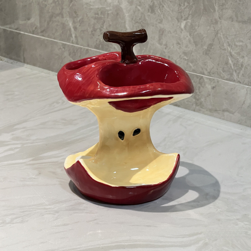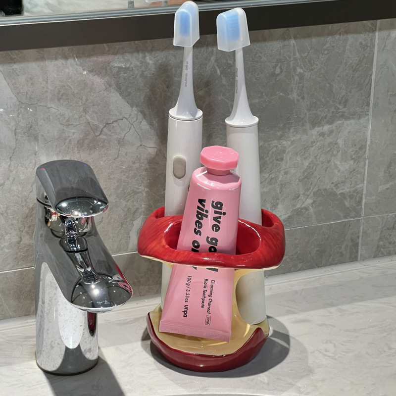 可爱苹果核电动牙刷架家用卫生间洗漱台化妆品牙具收纳陶瓷置物架