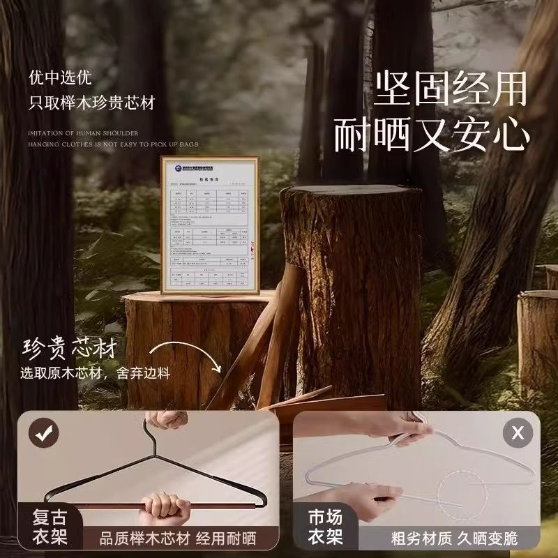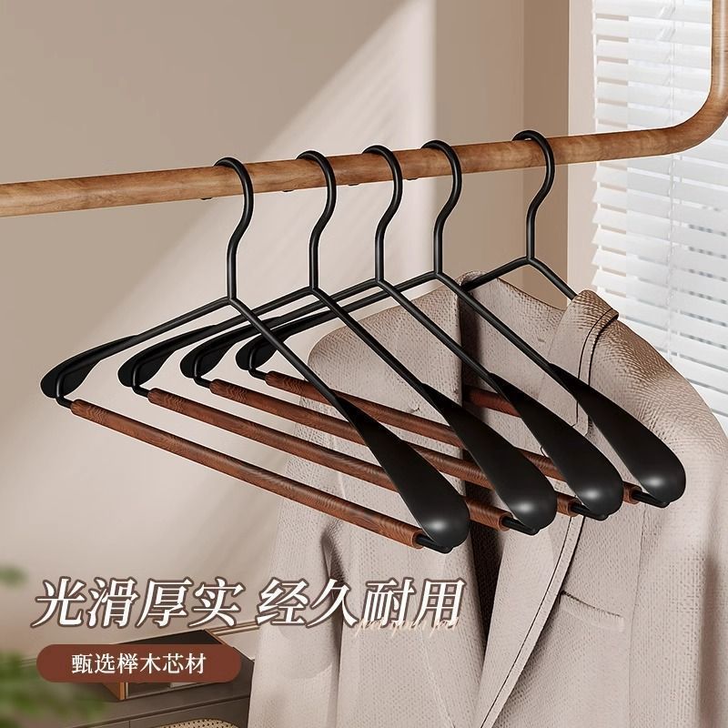 轻奢榉木衣架家用防滑无痕挂衣衣服挂架钢质宽肩磨砂挂杆超强耐磨