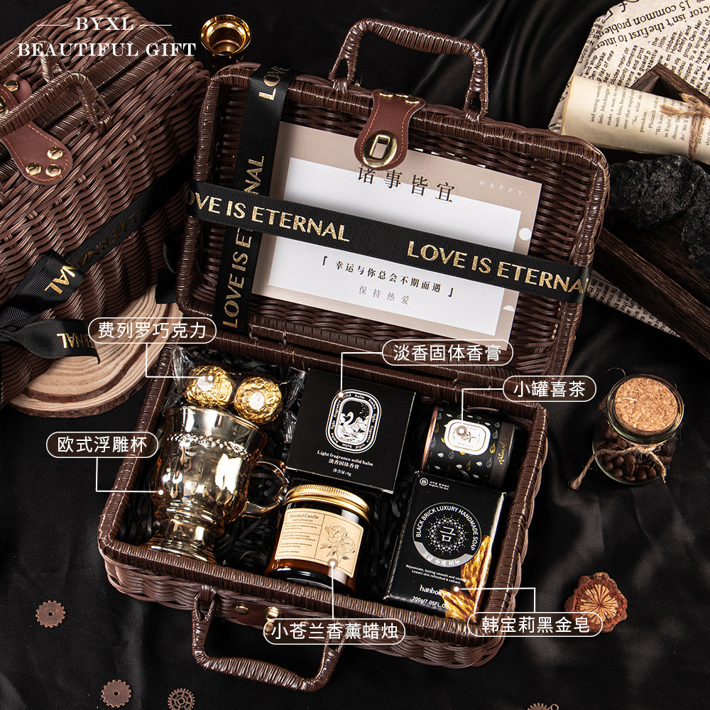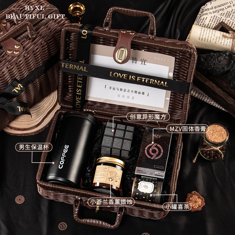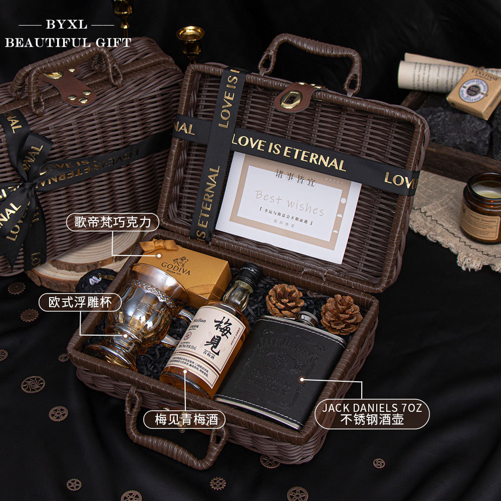 伴郎伴手礼男士结婚高档实用新郎婚礼高级感篮子公司商务藤编礼盒
