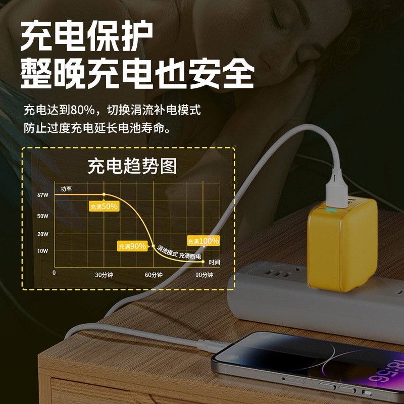适用型号☆♡☆黄色【内置伸缩线】65W快充 /送苹果充电转接头