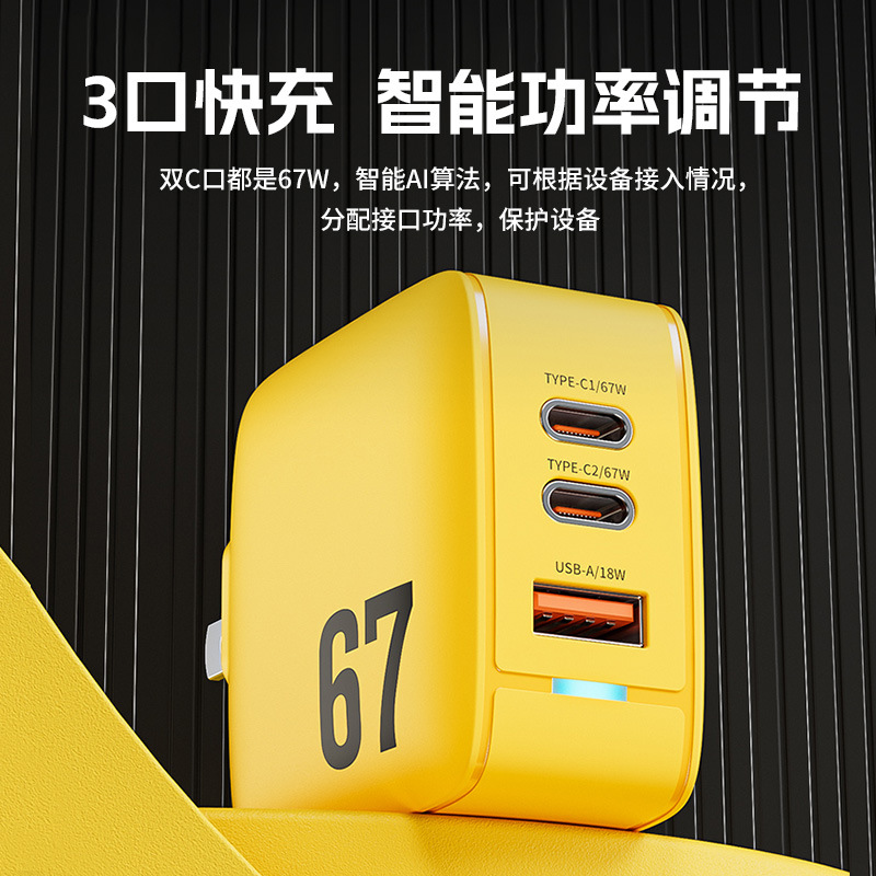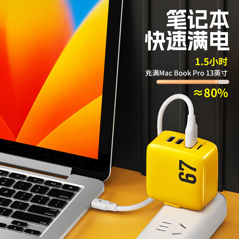 适用型号☆♡☆67W三口快充头「笔记本/平板/手机」