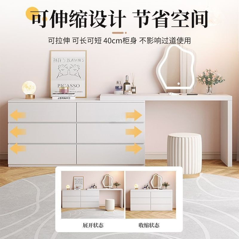 梳妆台卧室现代简约斗柜一体小户型收纳柜奶油风书桌可伸缩化妆桌