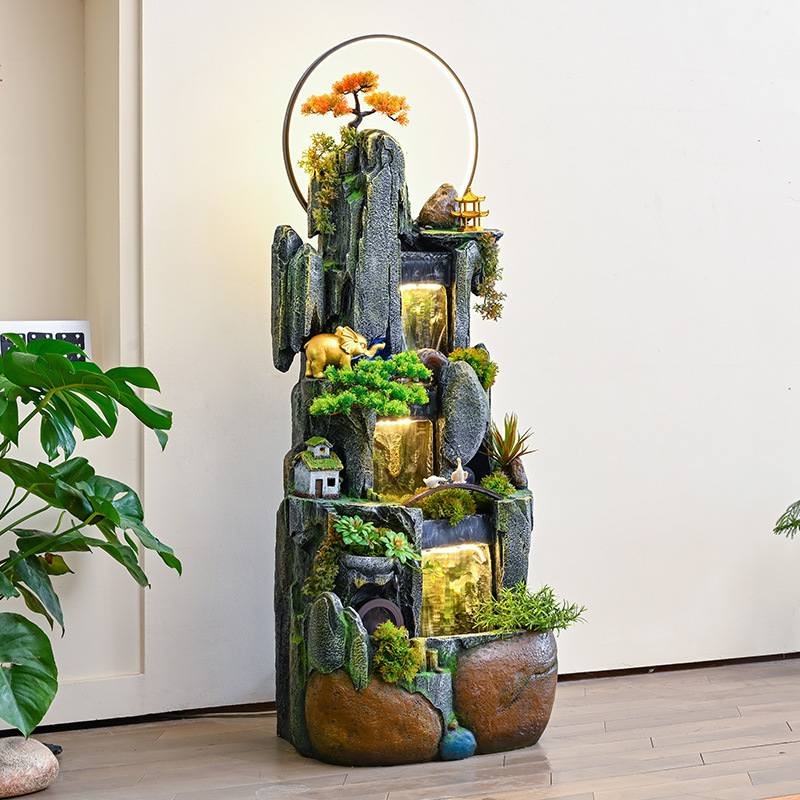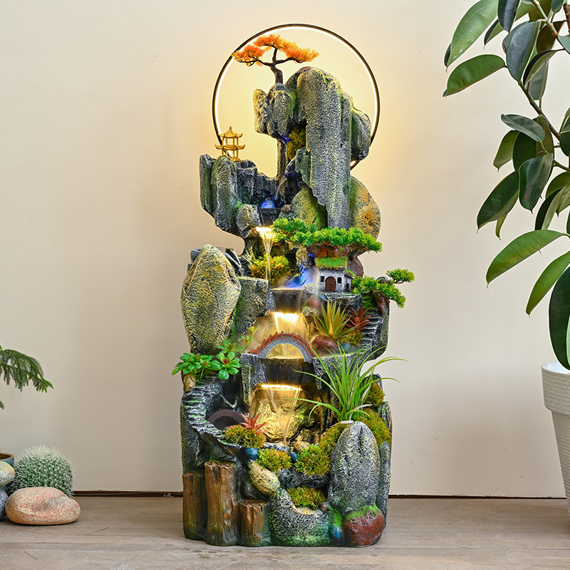 假山流水喷泉摆件循环水客厅玄关店铺开业送礼生财招财风水轮装饰