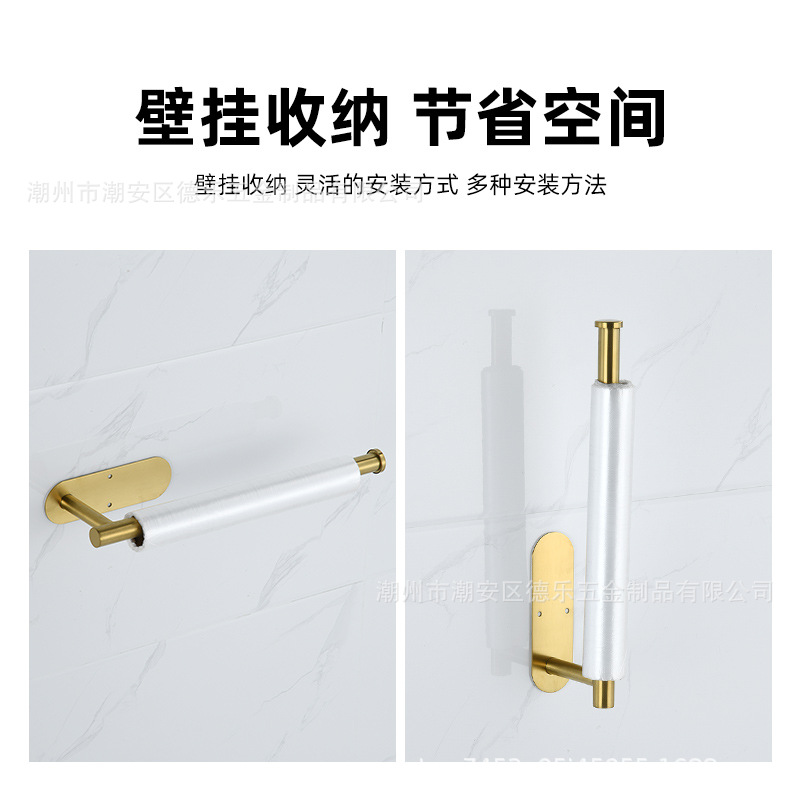 厨房卫浴挂杆挂件不锈钢免打孔粘贴卷纸巾挂杆毛巾杆多用途单杆