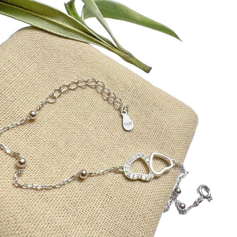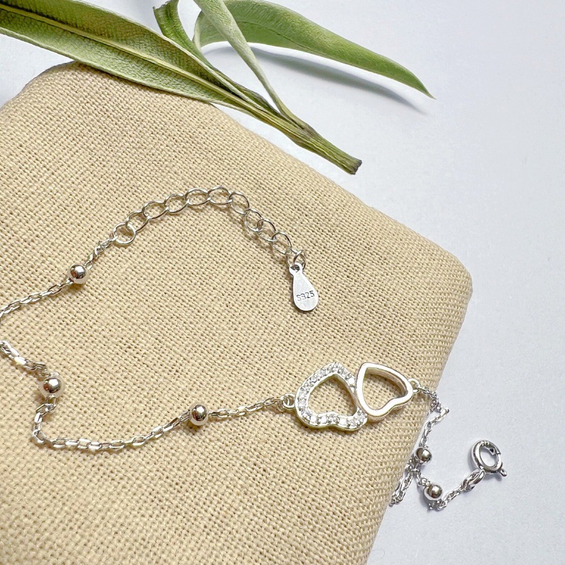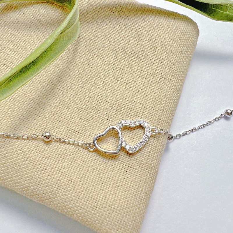 实拍实物s925纯银闪亮锆石双心形手链轻奢百搭气质爱心美少女甜美