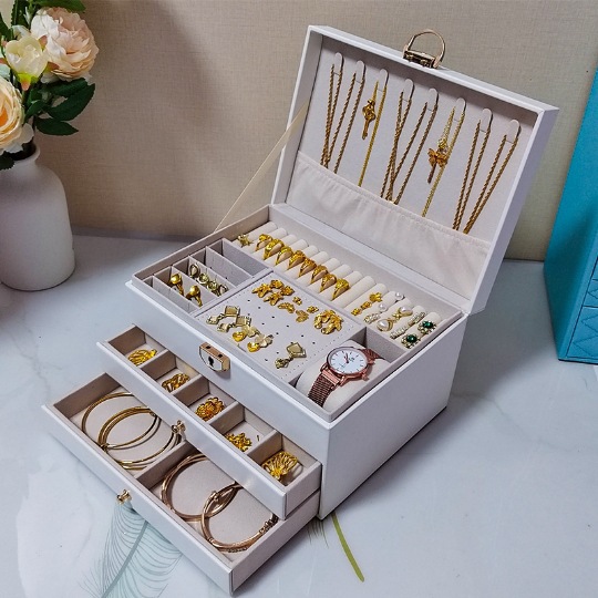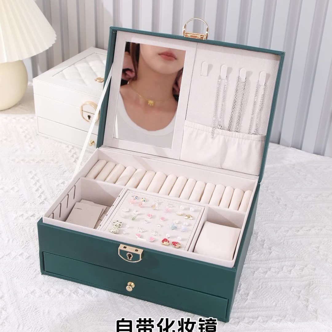 菱格三层抽屉首饰收纳盒欧式饰品盒卧室梳妆台高级首饰盒厂家批发