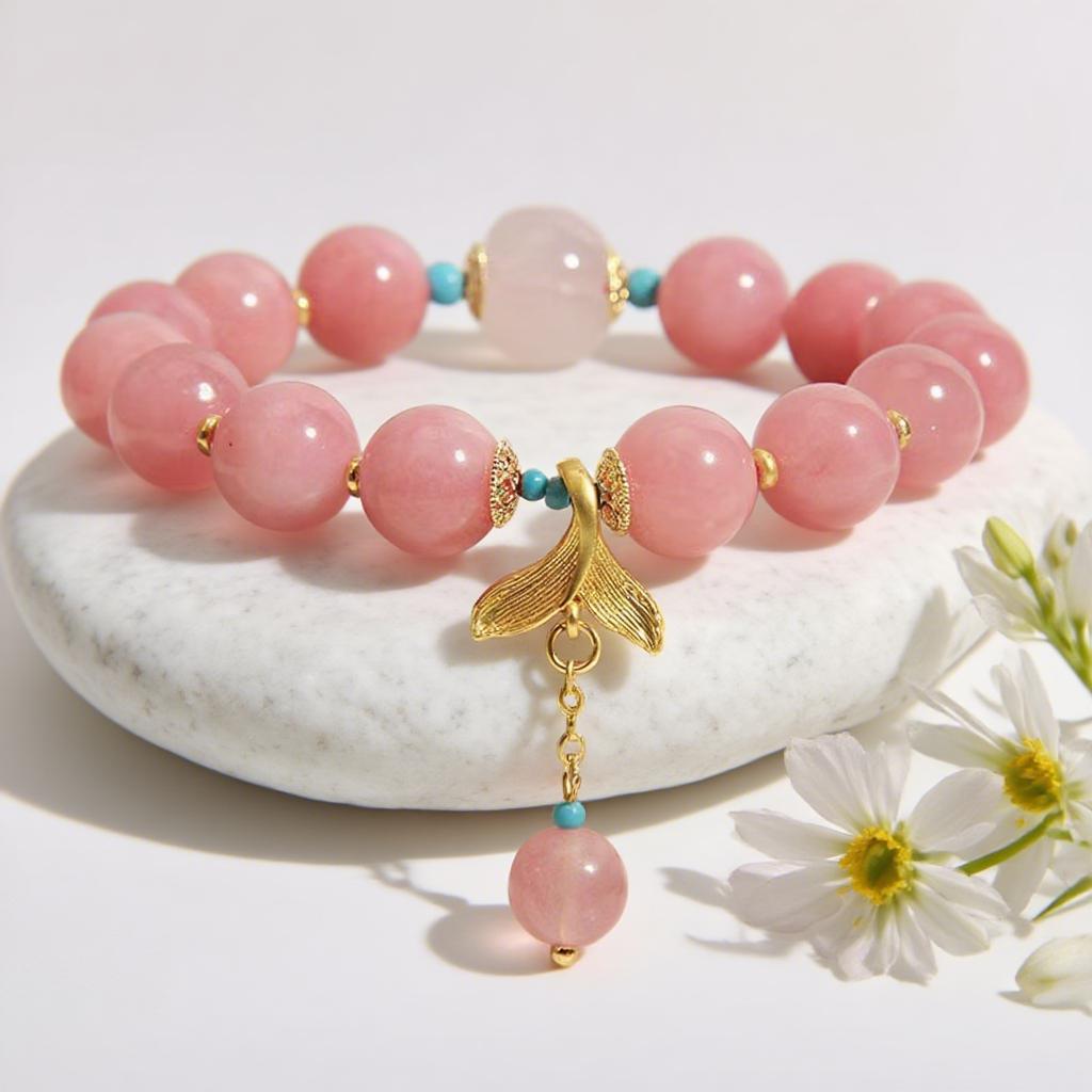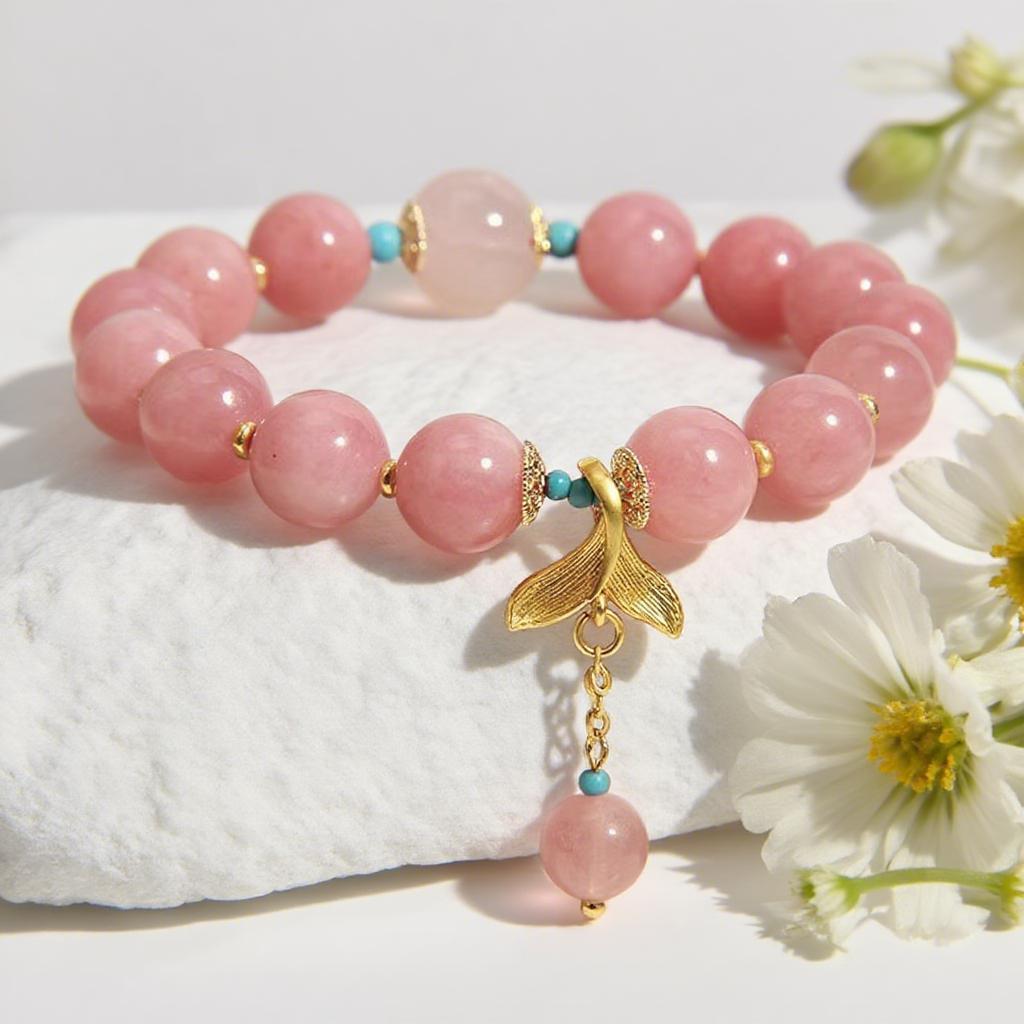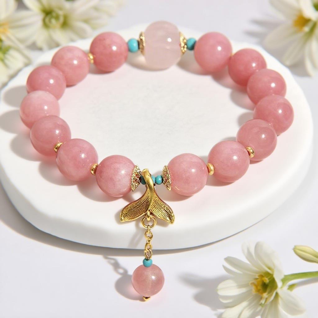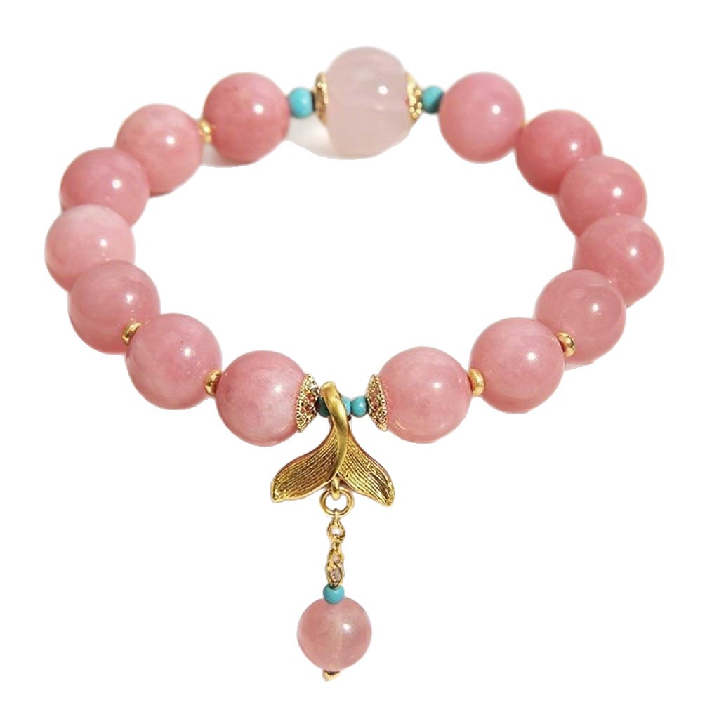 天然石粉晶手串粉水晶手链桃花鱼尾吊坠diy水晶手串手链成品批发