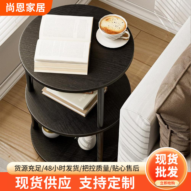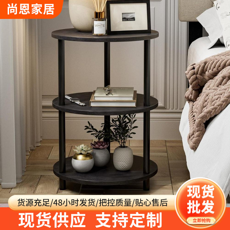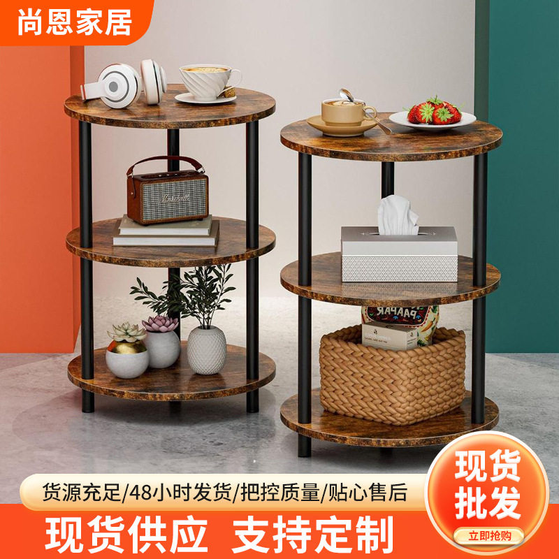 客厅边几置物架三层实木色家用阳台小茶桌置地式多层收纳置物架
