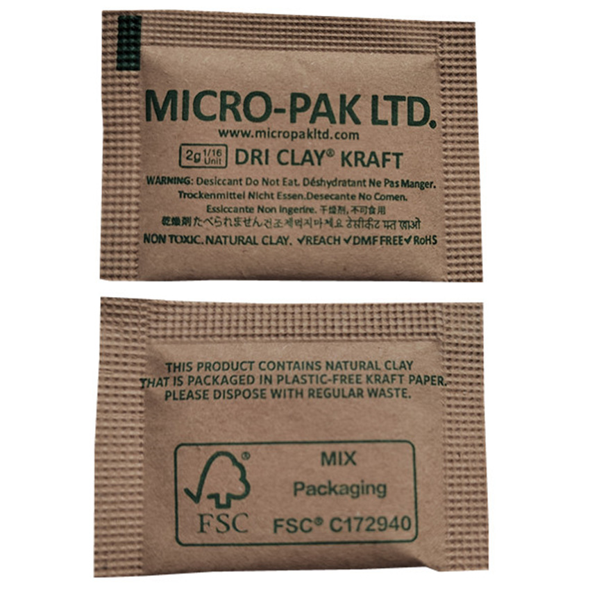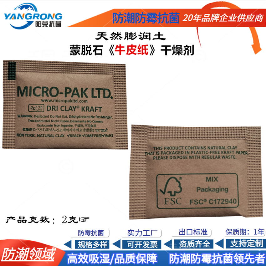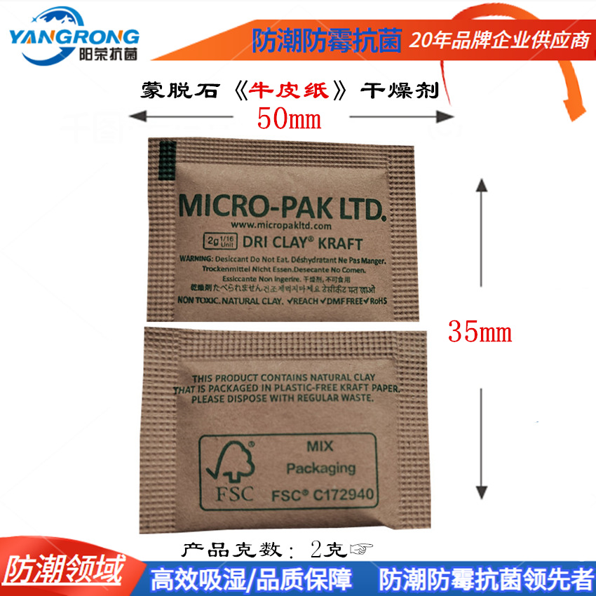 2g牛皮纸干燥剂MICROPAK新版迈可达蒙脱石干燥剂服装产品小包厂家