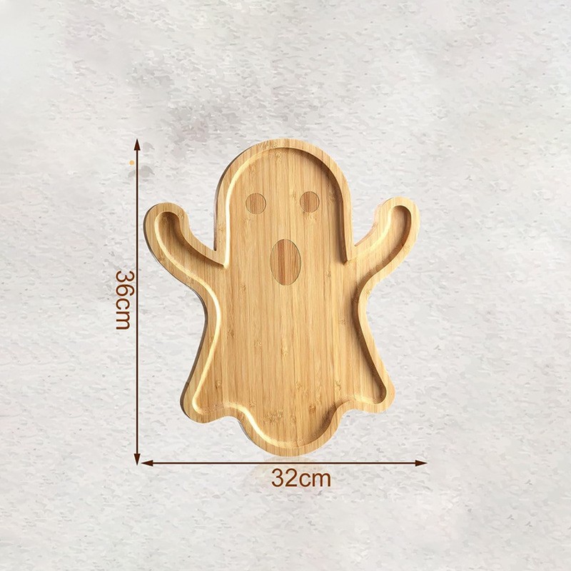 竹制幽灵造型托盘万圣节派对装饰服务上菜盘聚会甜品熟食托盘